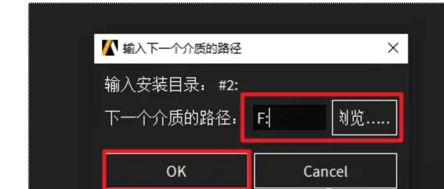 39.回到软件ANSYS安装界面,点击“浏览”选择“F”盘(上一步显示的盘符),点击“选择文件夹”,点击“OK”,软件继续安装