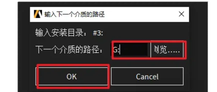 42.回到软件安装界面,点击“浏览”选择“G”盘(上一步显示的盘符),点击“选择文件夹”,点击“OK”,软件继续安装