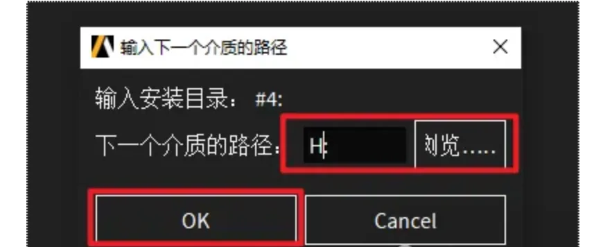 45.回到软件ANSYS安装界面,点击“浏览”选择“H”盘(上一步显示的盘符),点击“选择文件夹”,点击“OK”,软件继续安装