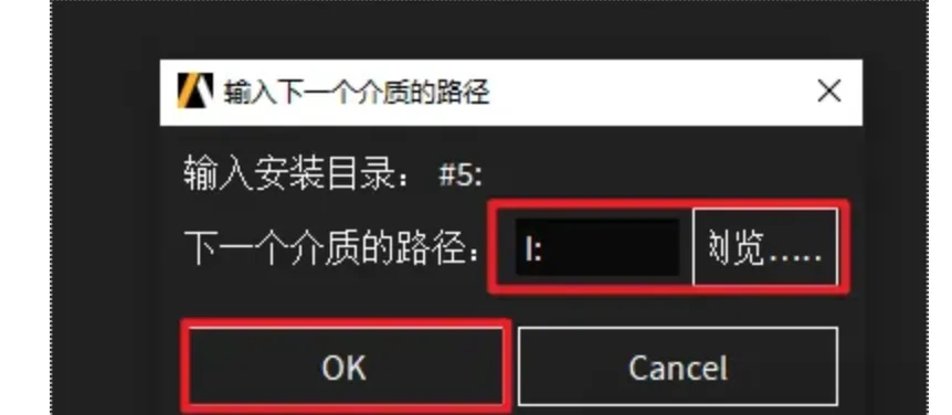 48.回到软件安装界面,点击“浏览”选择“I”盘(上一步显示的盘符),点击“选择文件夹”,点击“OK”,软件继续安装