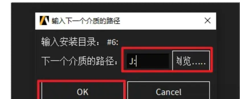 51.回到软件安装界面,点击“浏览”选择“J”盘(上一步显示的盘符),点击“选择文件夹”,点击“OK”,软件继续安装