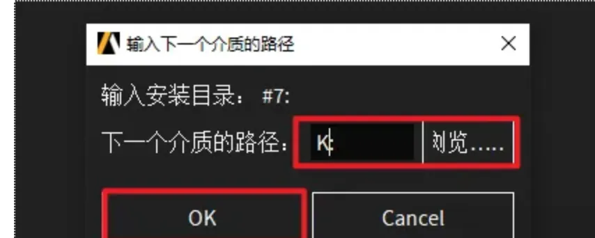 54.回到软件安装界面,点击“浏览”选择“K”盘(上一步显示的盘符),点击“选择文件夹”,点击“OK”,软件继续安装