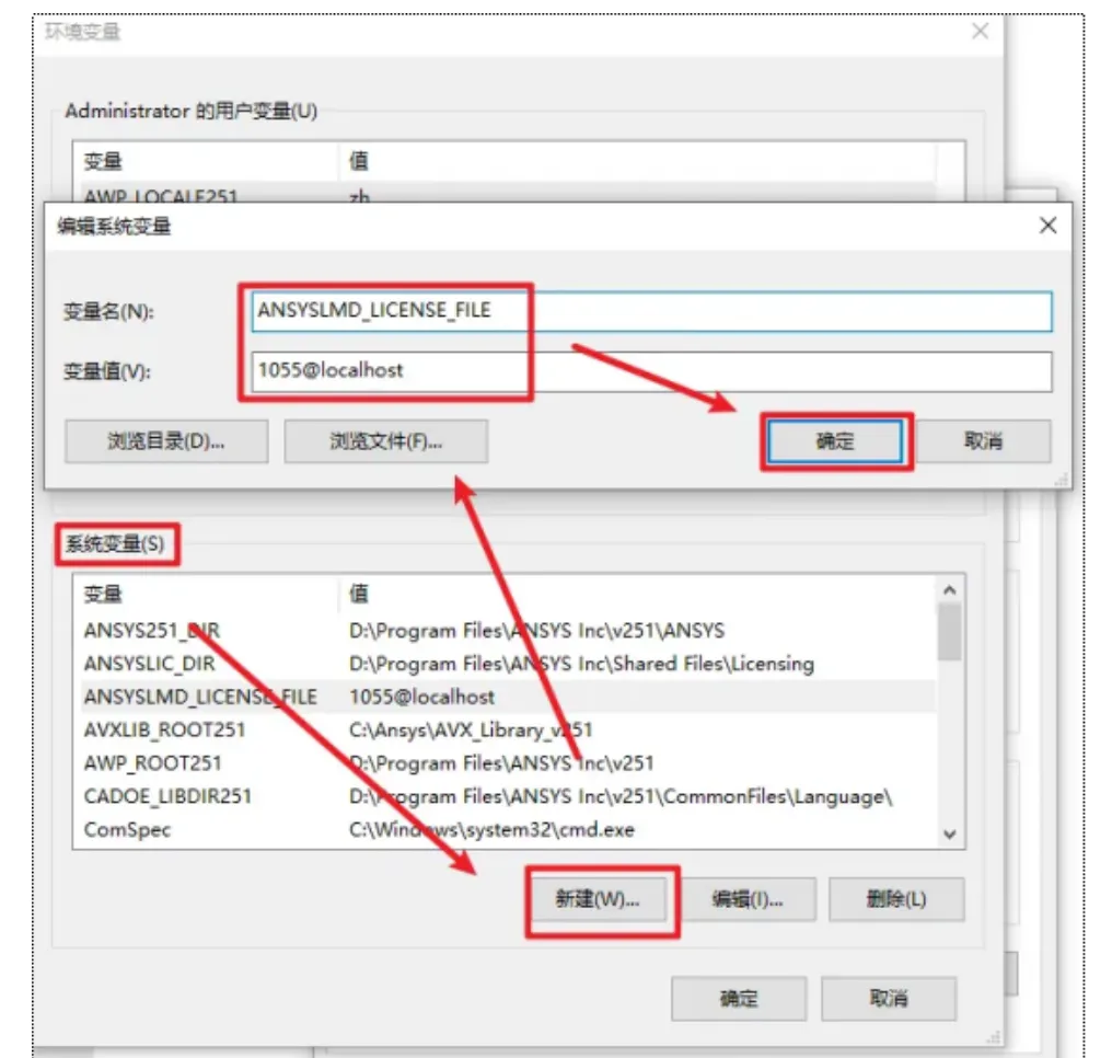 62.添加变量名 “ANSYSLMD_LICENSE_FILE”和环境变量值“1055@localhost”