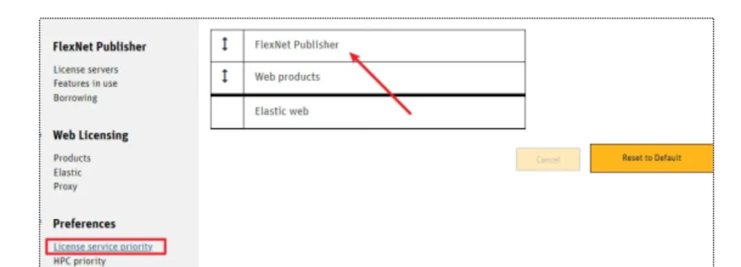 69.打开“License service priority”,确保“FlexNet Publisher”在最上边第一个