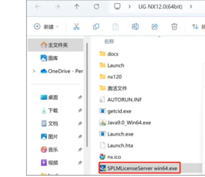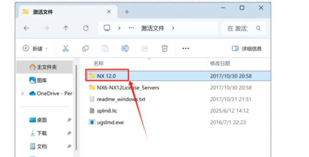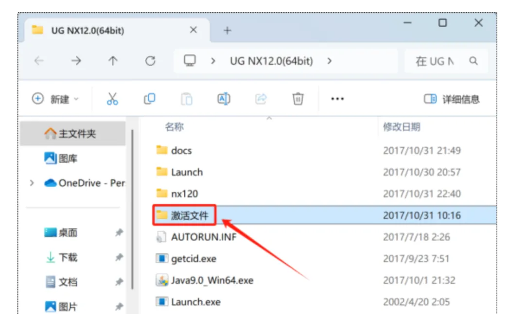 8.打开NX UG安装包解压后的【UG NX12.0(64bit)】文件夹中的【激活文件】文件夹。