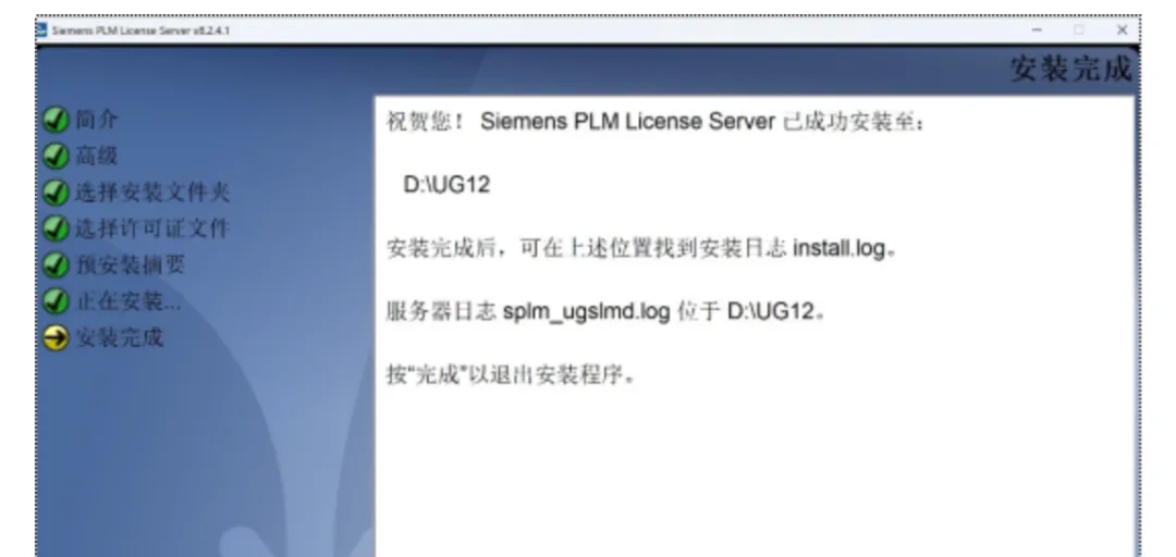 打开解压包内 UG NX12.0(64bit)\LicenseServer文件夹;右键以管理员身份运行 SPLMLicenseServer win64;点击“下一步”,选择许可证文件路径(修改好的 .lic),完成安装;覆盖破解文件:将 激活文件内ugslmd.exe复制到许可证安装目录(默认C:\Program Files\SiemensPLMLicenseServer),覆盖原文件;启动许可证服务:打开 lmtools.exe(管理员身份)→ 切换到Start/Stop/Reread标签 → 先Stop服务,再Start服务,显示success即完成。