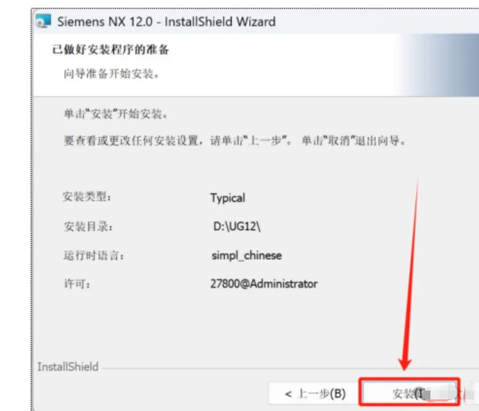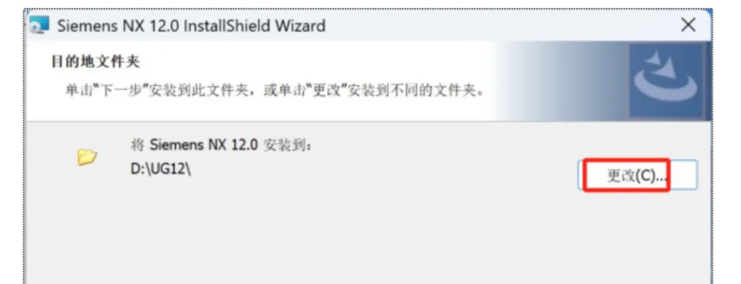 26.点击【下一步】(点击“更改”可更改软件安装路径,可选择“步骤15”中新建的UG12.0文件夹)。