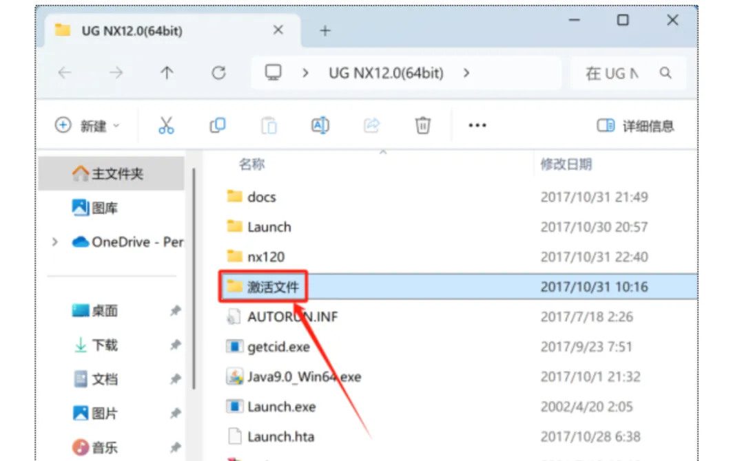 34.打开安装包解压后的【UG NX12.0(64bit)】中的【激活文件】文件夹。