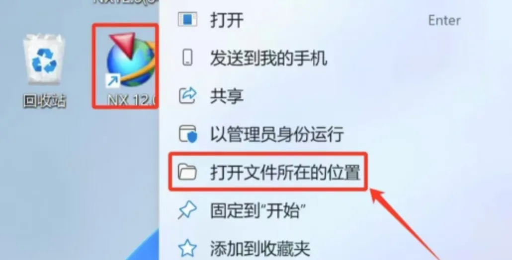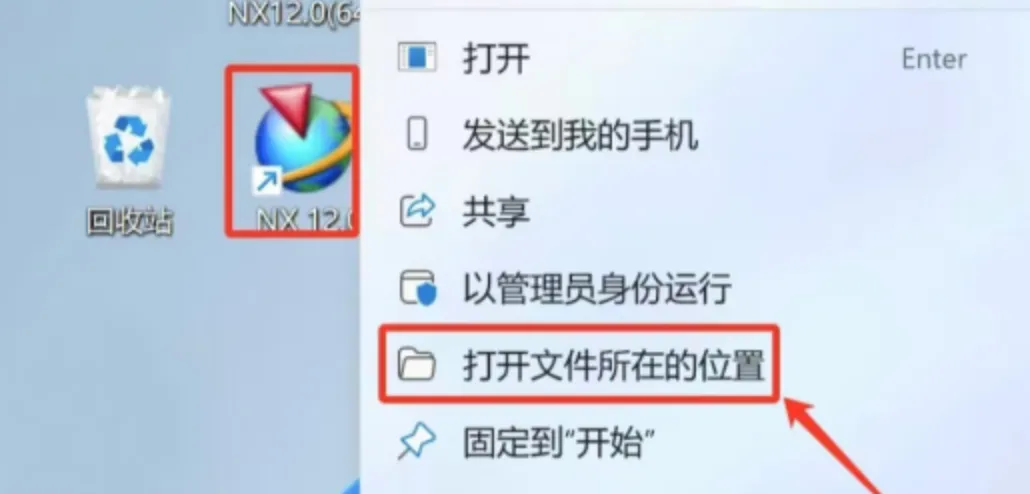 46.鼠标右击桌面【NX 12.0】图标选择【打开文件所在位置】。
