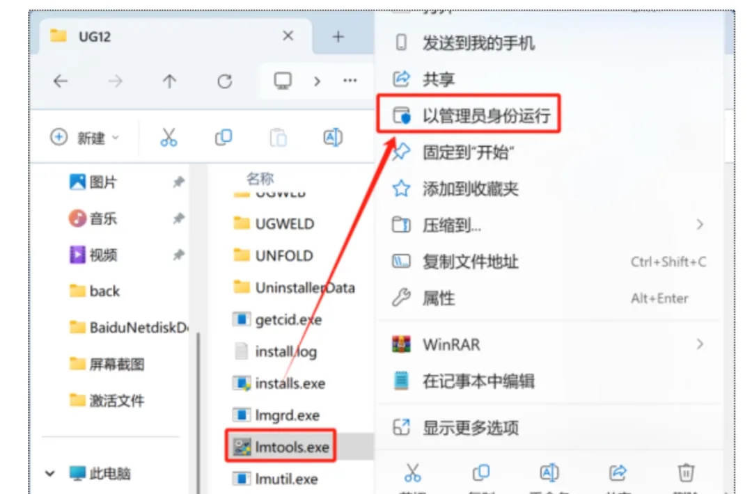 12.打开安装包解压后的【UG NX12.0(64bit)】文件夹,鼠标右击【SPLMLicenseServer win64】选择【以管理员身份运行】。