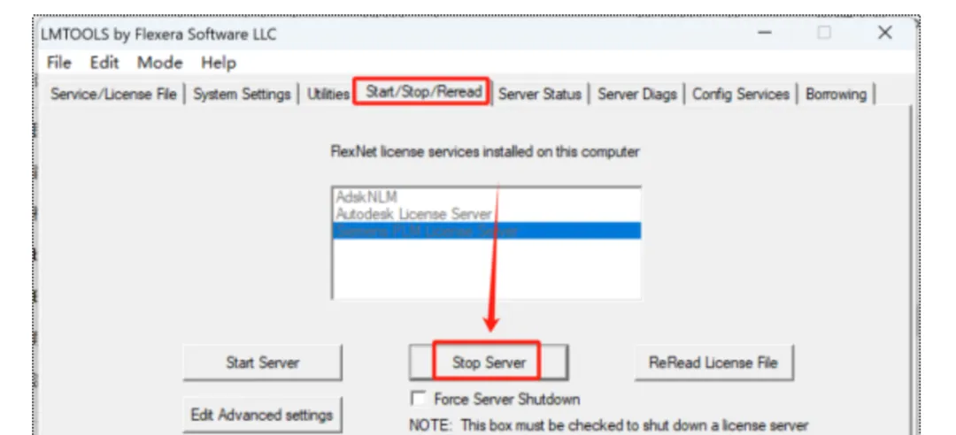 41.点击【Start/Stop/Reread】,点击【Stop Server】。