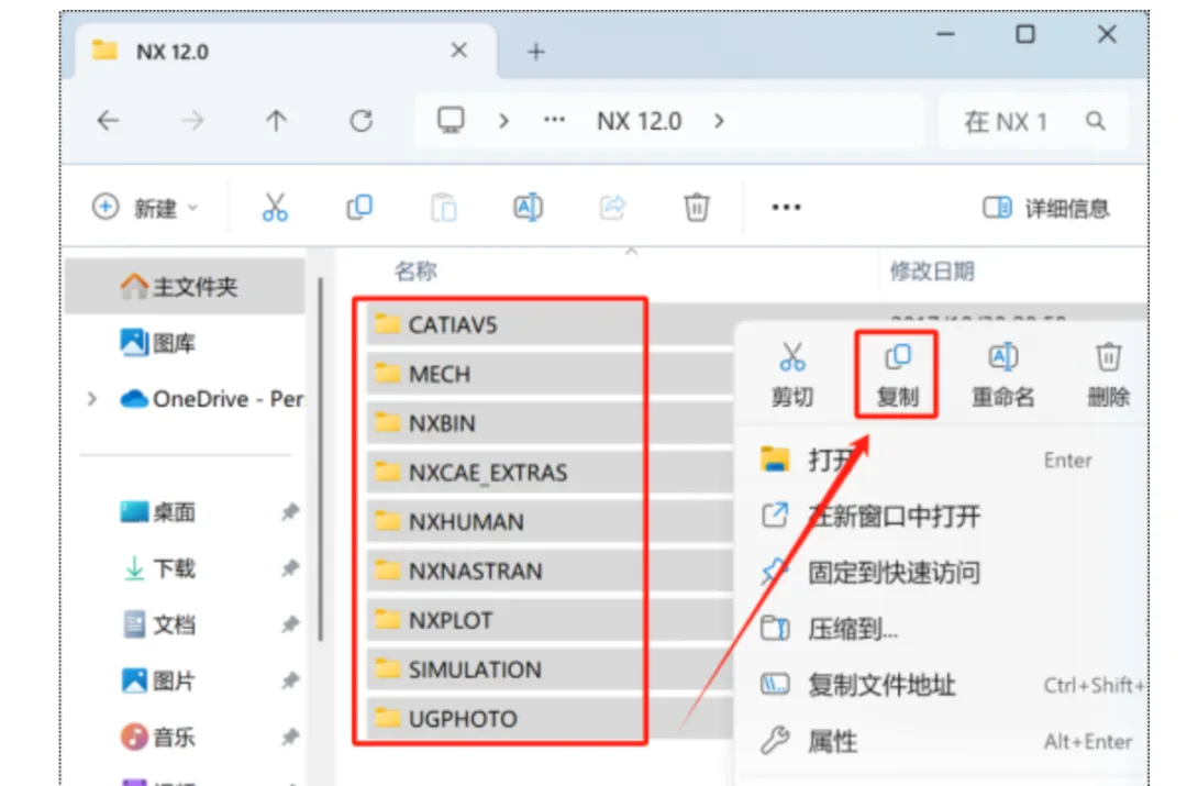 1.把上面链接中的NX UG安装包下载到电脑上,鼠标右击【UGNX12.0(64bit)】选择【全部解压缩】。