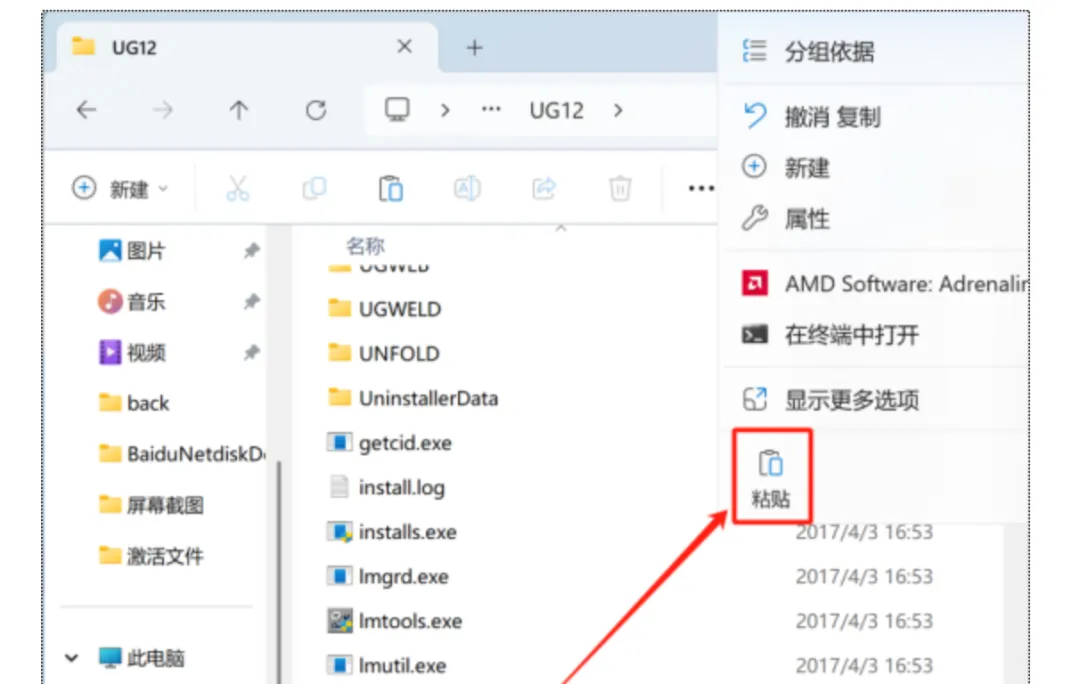 43.打开安装包解压后的【UG NX12.0(64bit)】中的【激活文件】文件夹。