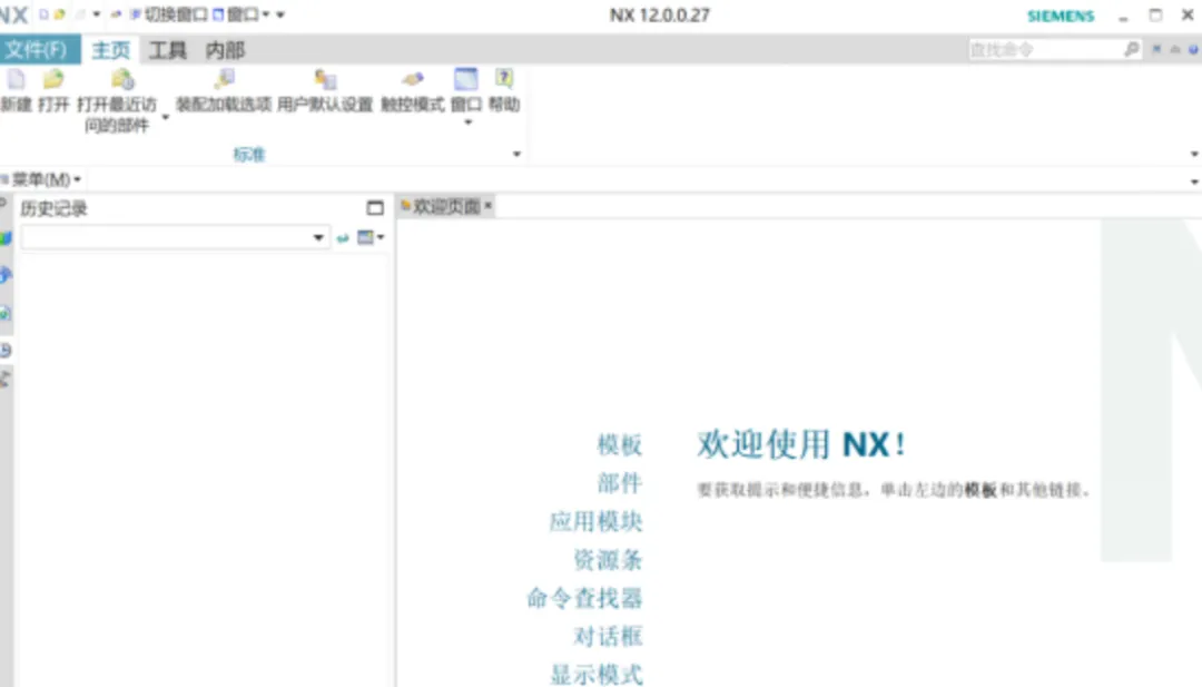 打开开始菜单 → Siemens NX 12.0→ 启动 NX 12.0(首次启动较慢,耐心等待);首次启动可设置工作目录(文件→实用工具→用户默认设置→基本→环境→工作目录),方便文件管理。