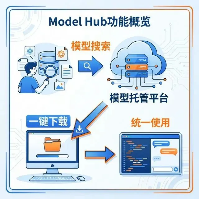 模型托管平台的出现,就是为了一站式解决这些问题。它提供标准化的搜索、下载和使用方式,让你像安装APP一样使用大模型。
