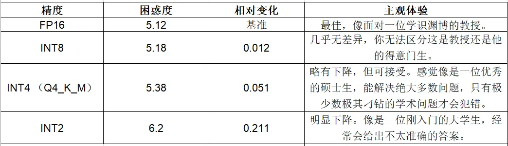 从数据看,INT4量化只带来约5%的困惑度上升,在实际对话、写作、编程等任务中,你几乎感知不到差异。这就是为什么 INT4是目前本地部署的“甜点”精度——它在显存节省(节省75%)和效果保持(保留95%以上的能力)之间取得了最佳平衡。