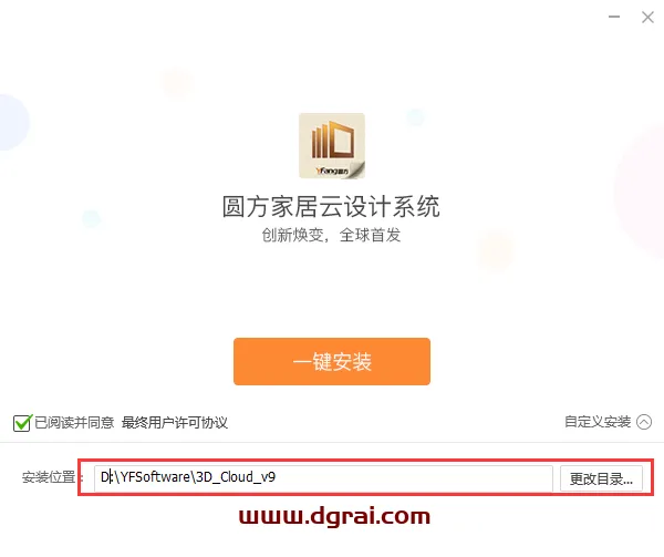 4、可以手动在路径上进行更改,也可以点击【更改目录】进去更改(请注意:更改安装位置不能带有中文或特殊符号)。然后点击【一键安装】