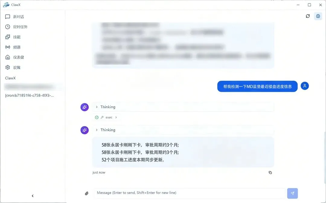 我们试着问了一句:蓝堡最近的项目进度怎么样?