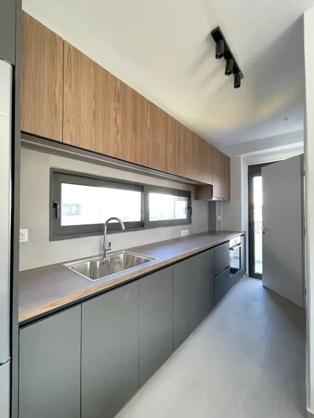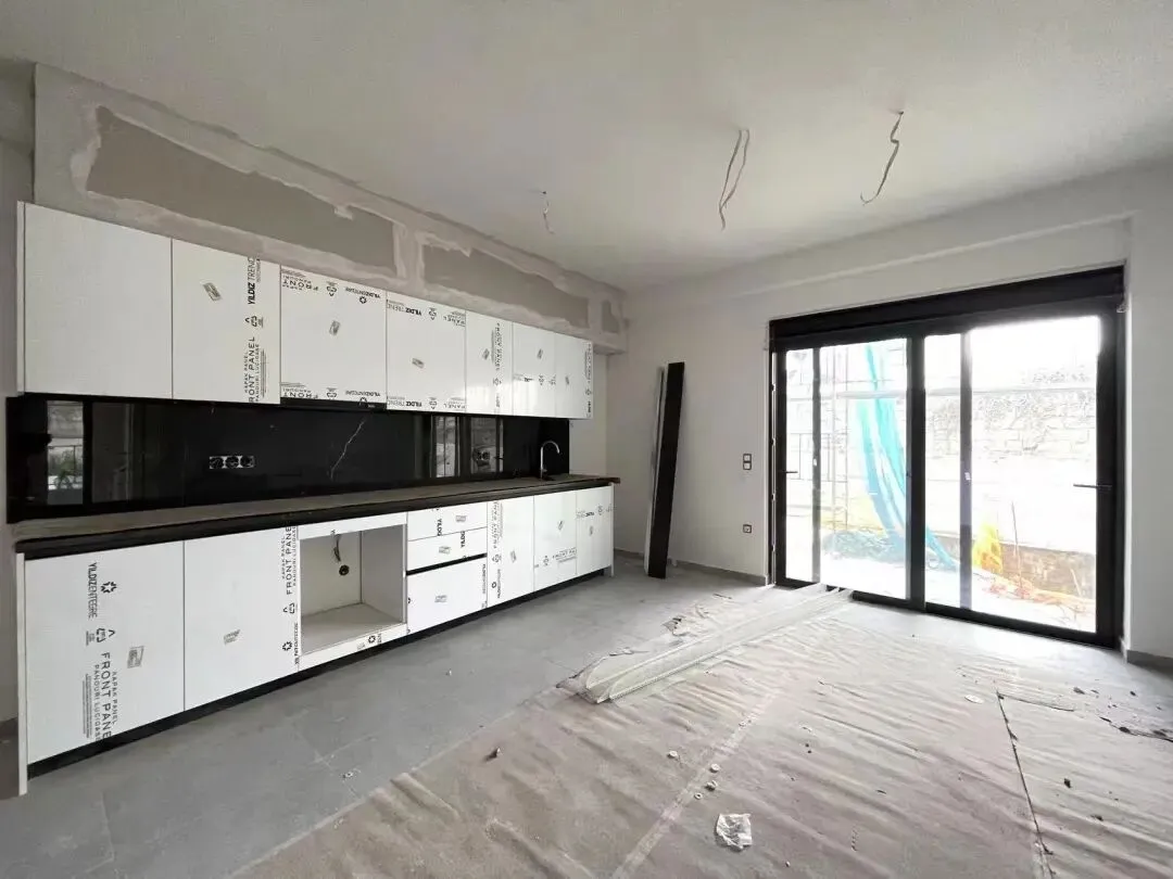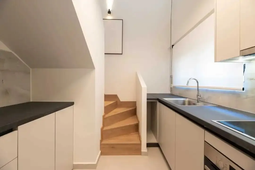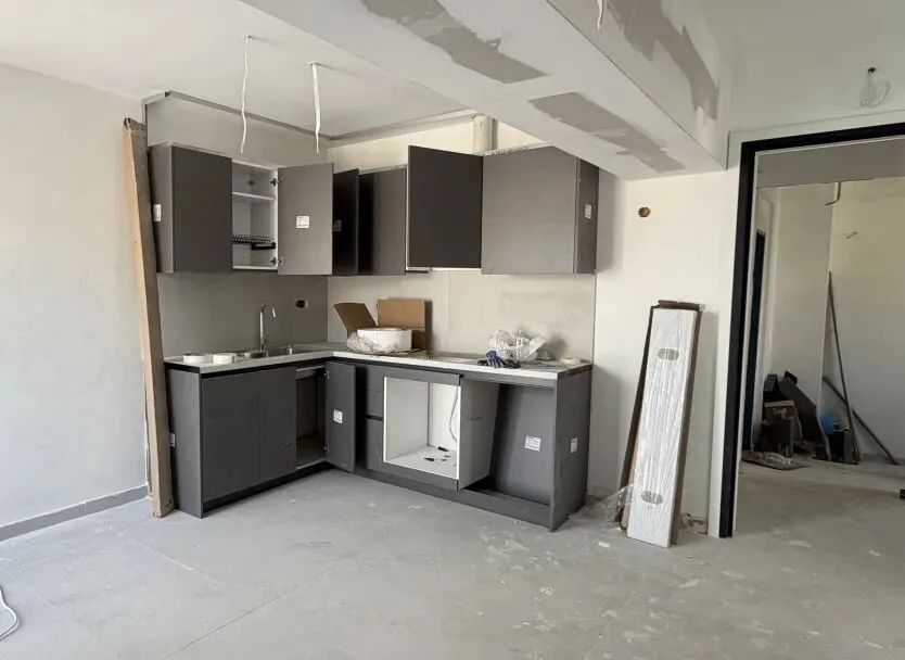 公共区域施工,室内门套基层、房门、洁具、厨具等安装。