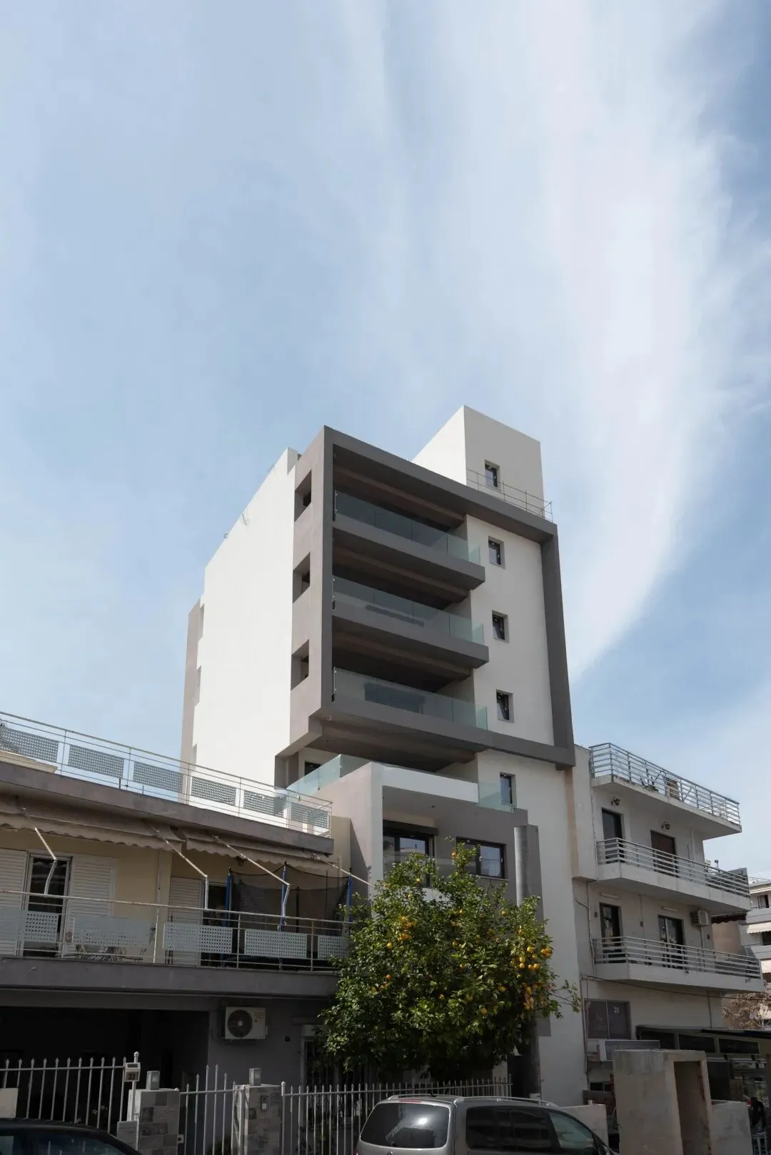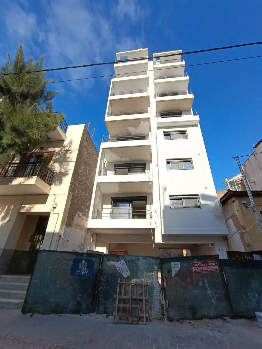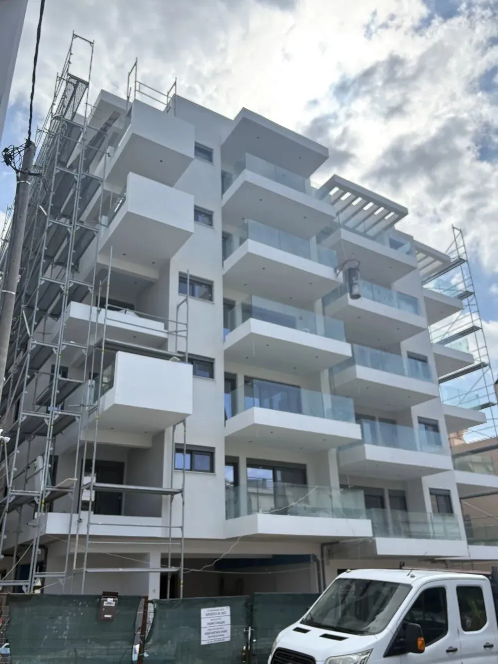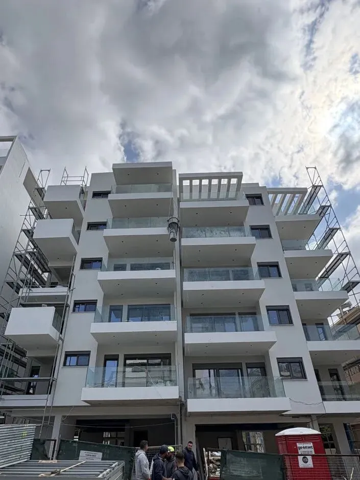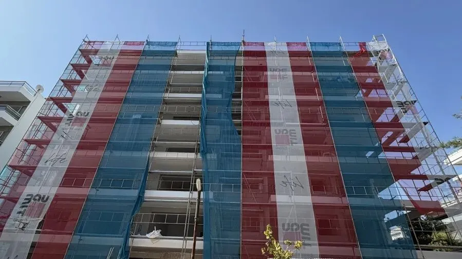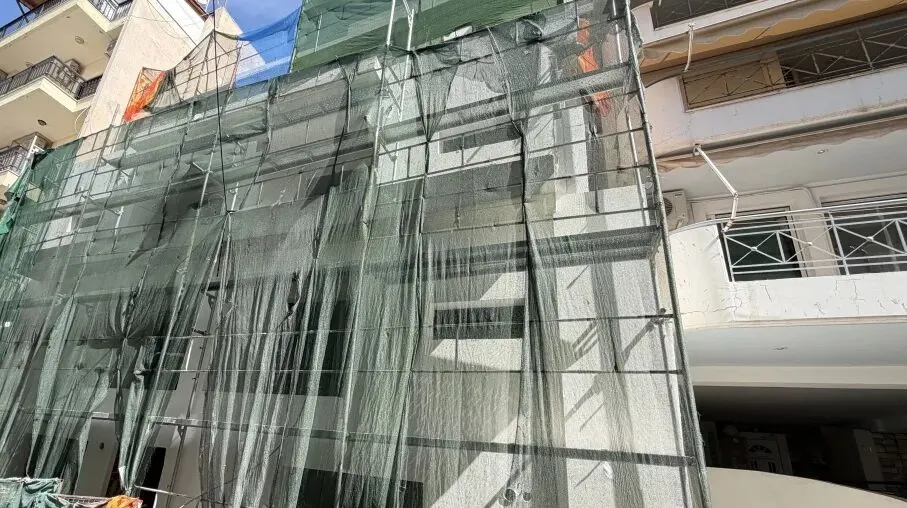 建筑主体结构框架已完工,保温层,防水层准备进场安装,外墙水泥砂浆作业同步进行。