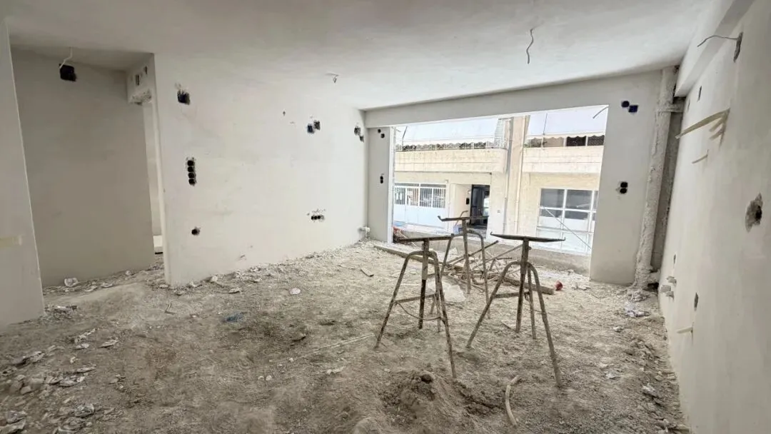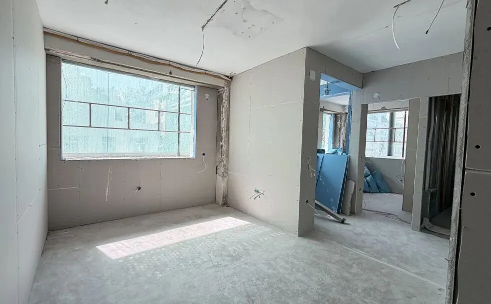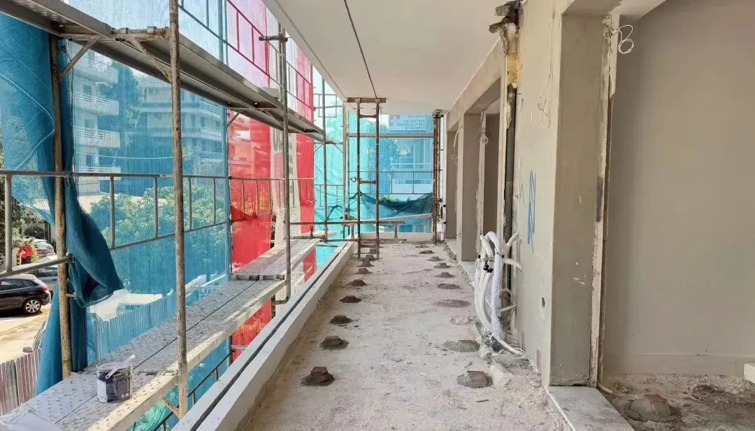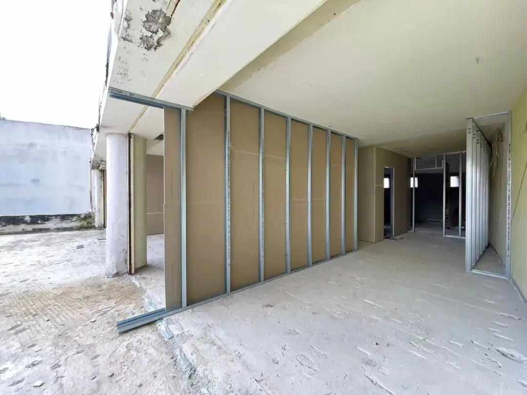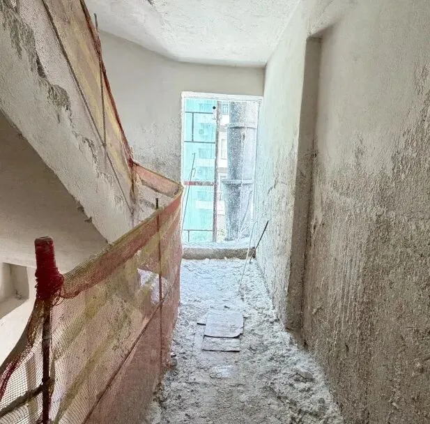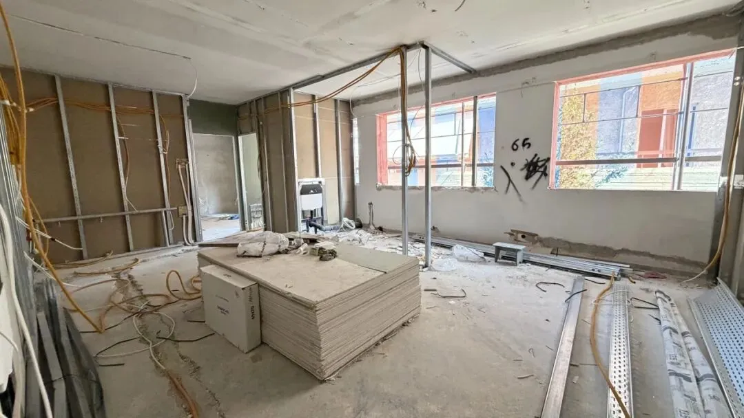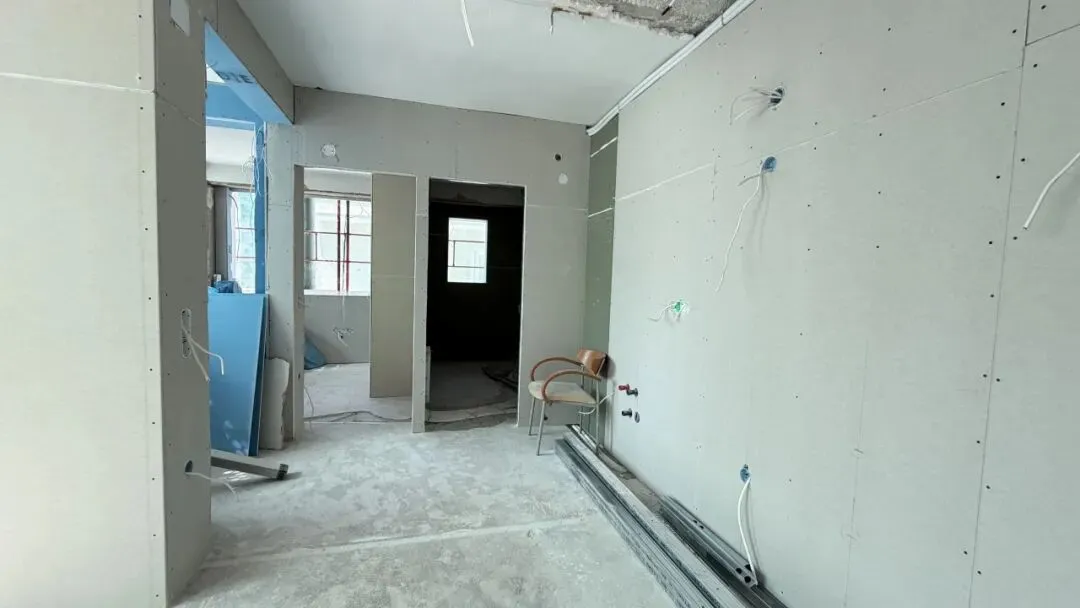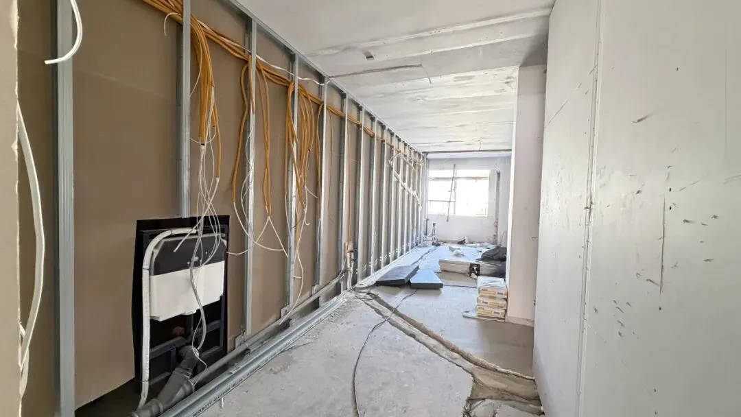 拆除旧部分建筑,公共区域清除残留建筑垃圾,准备开始隔墙工程。