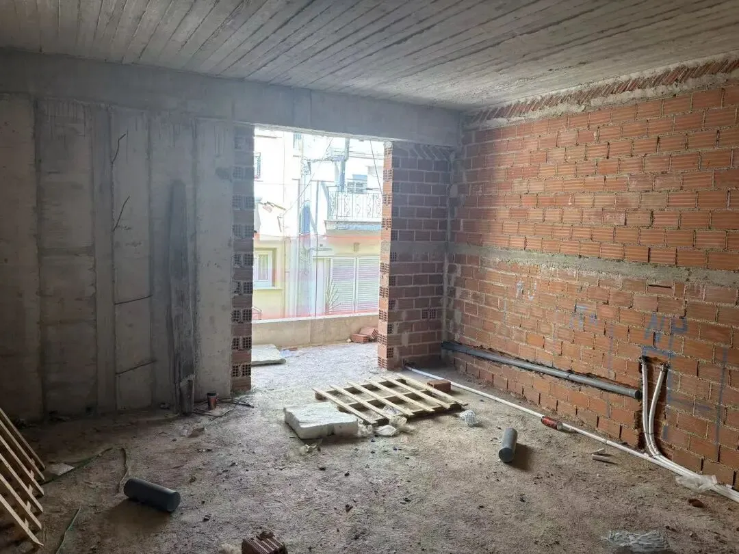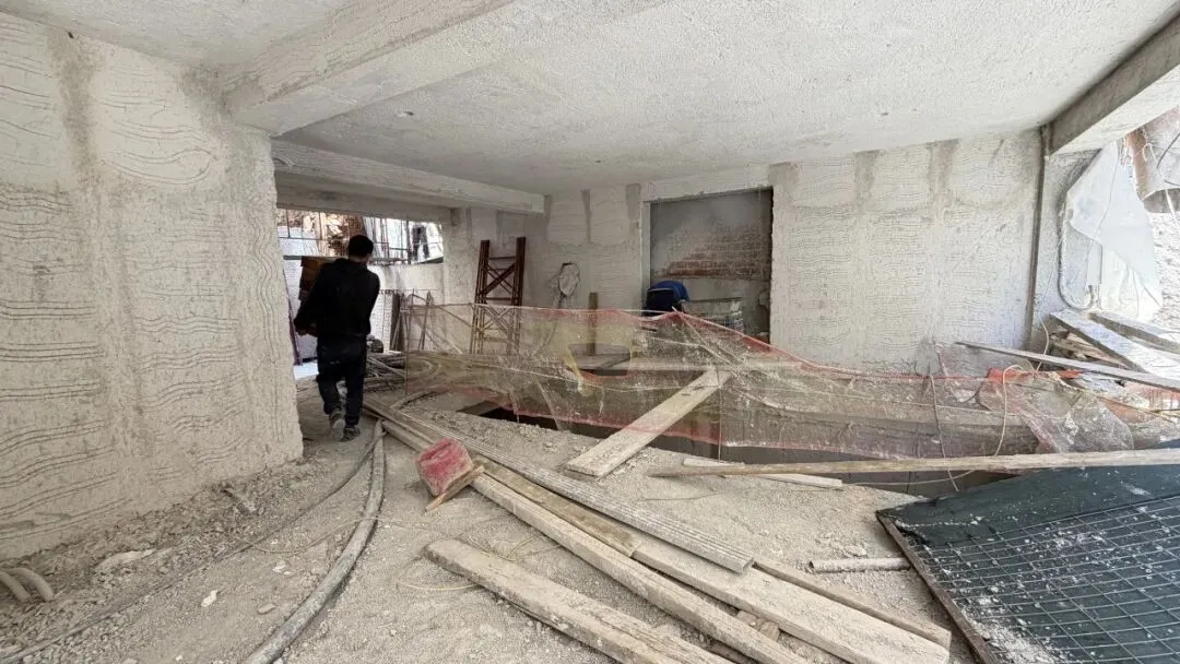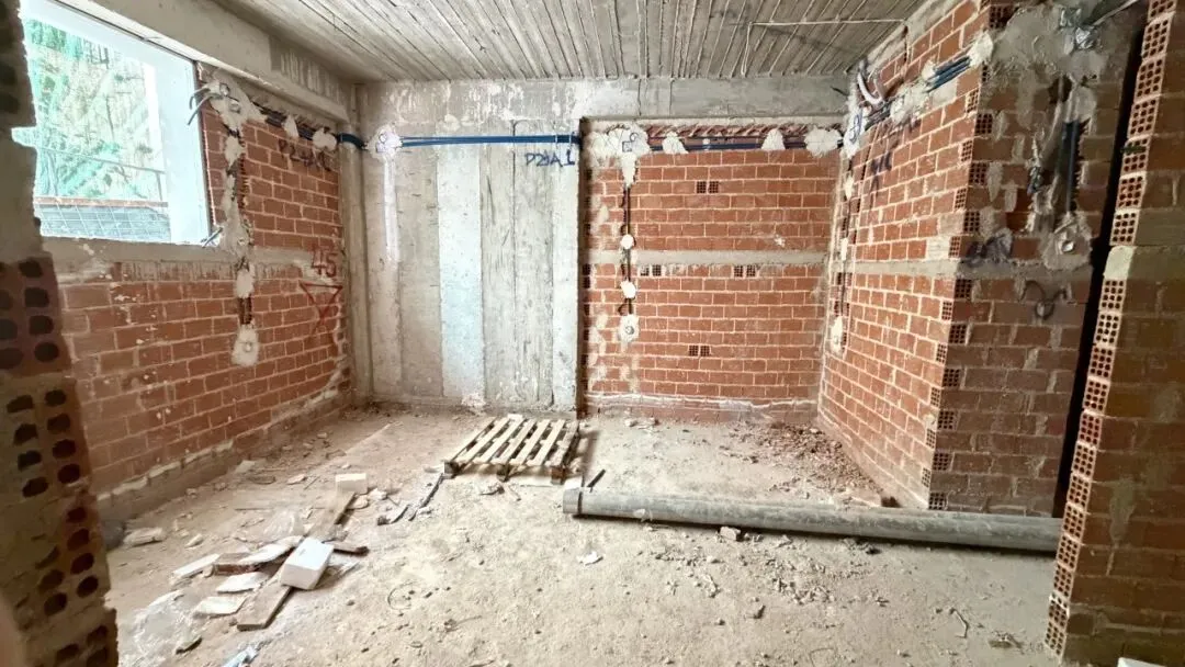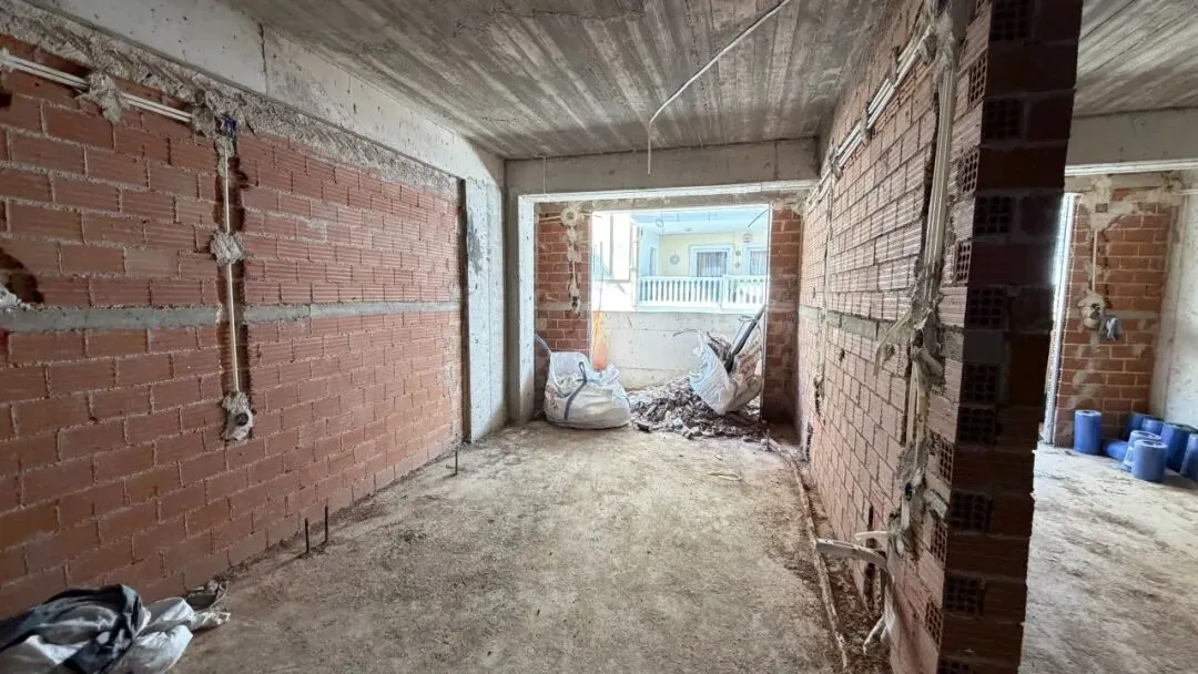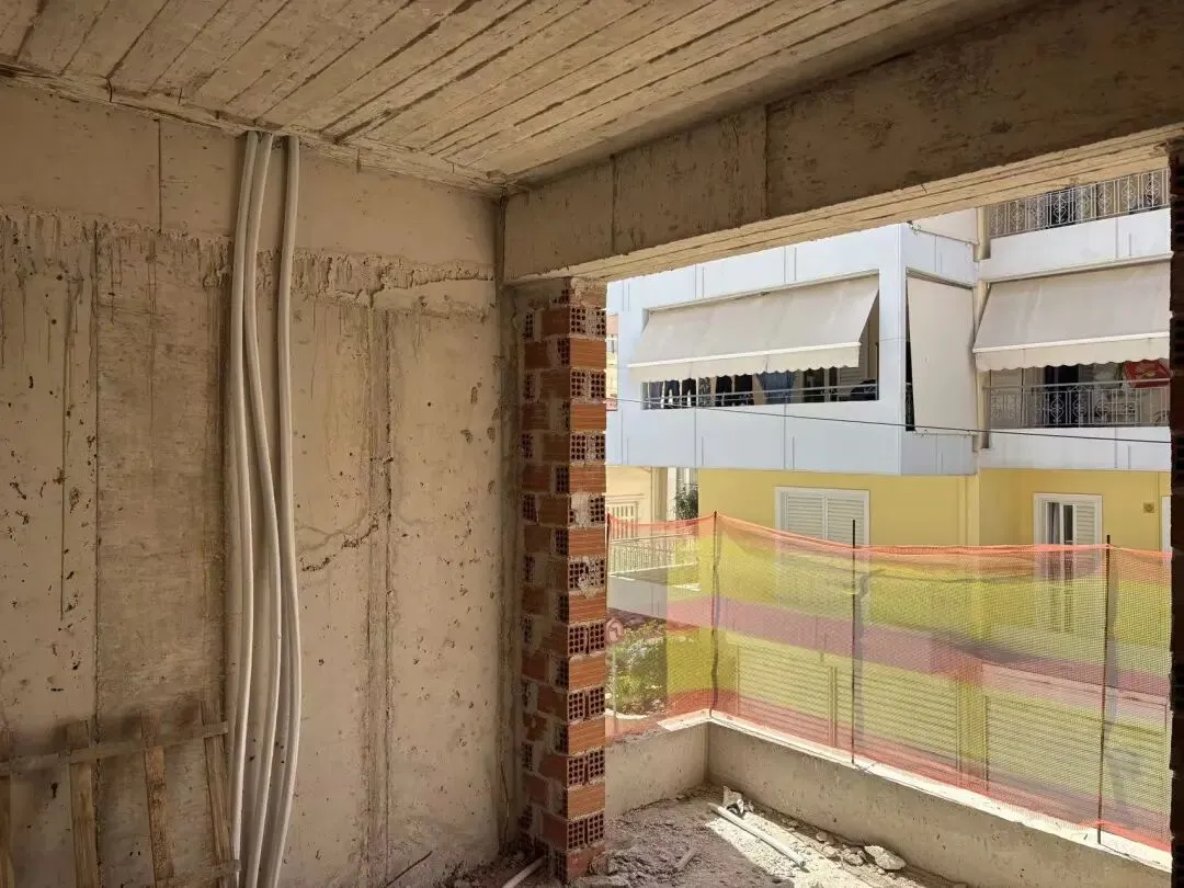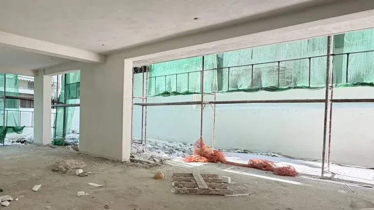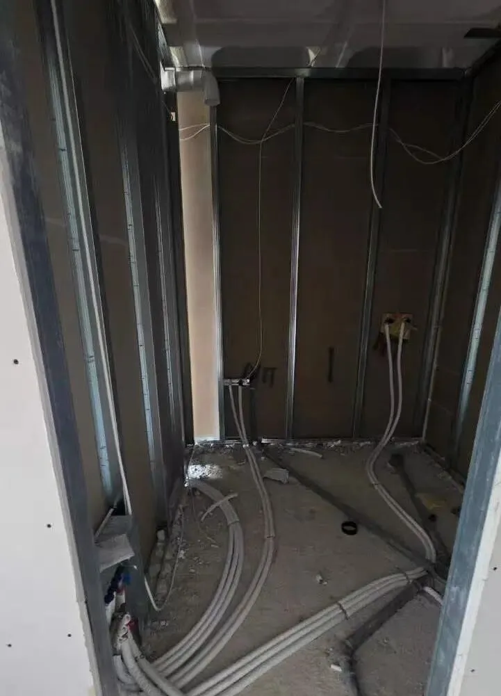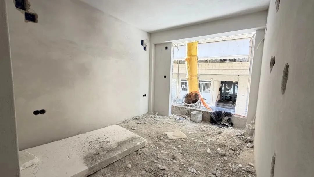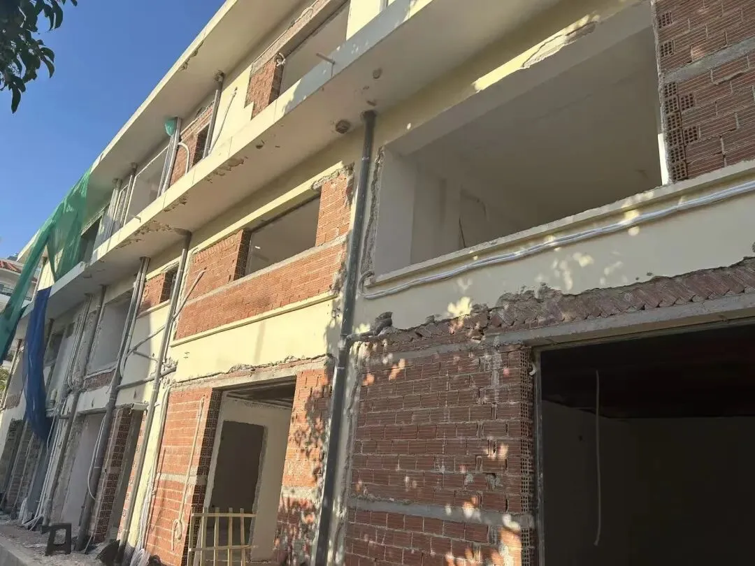 拆除旧部分建筑,公共区域清除残留建筑垃圾,准备开始隔墙工程。