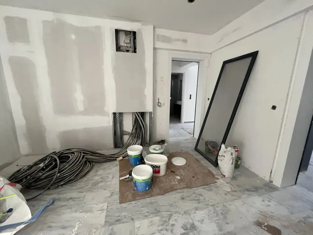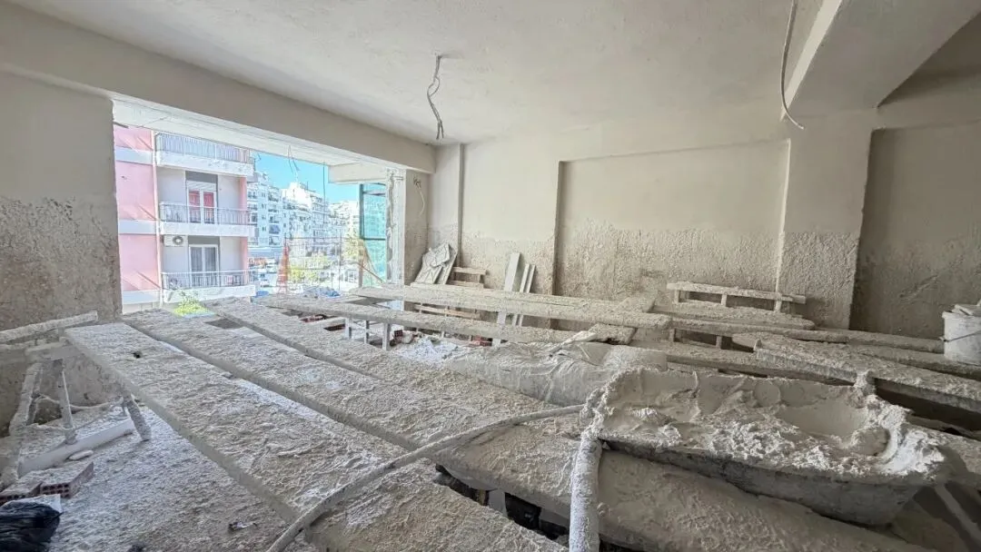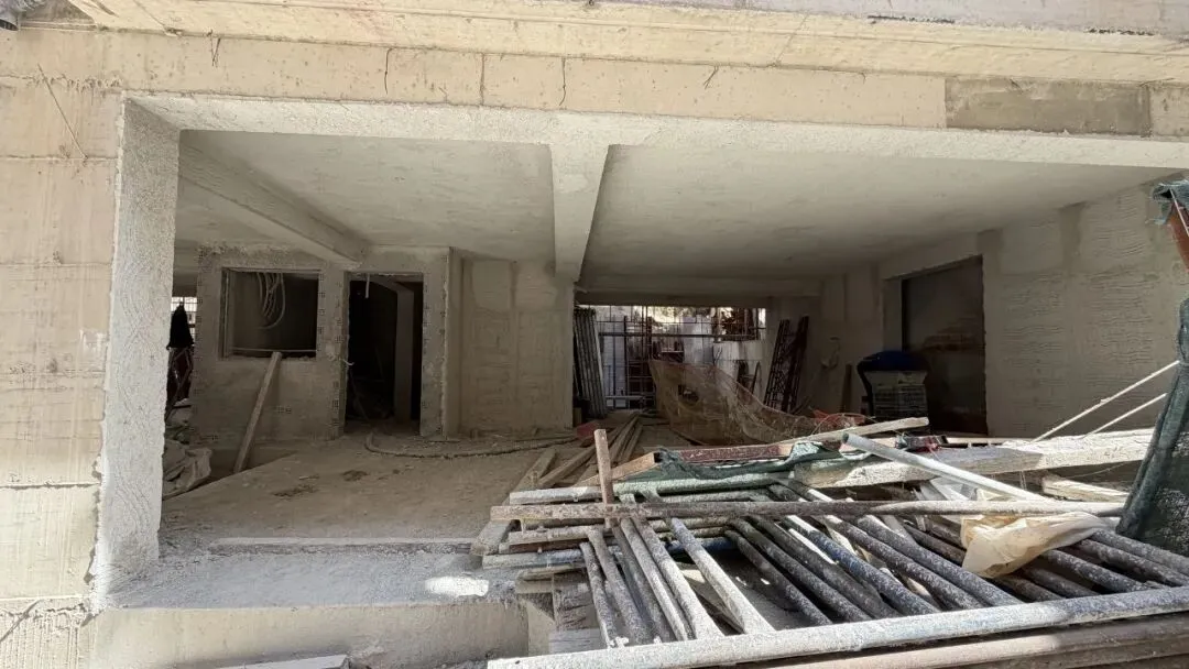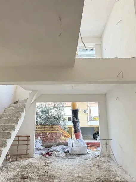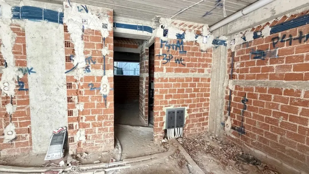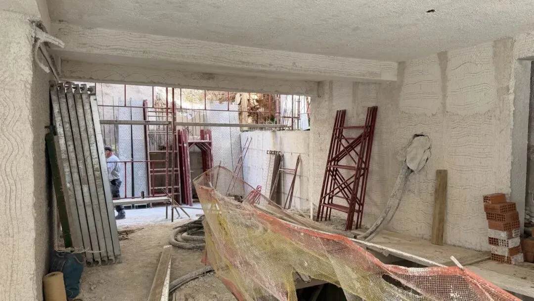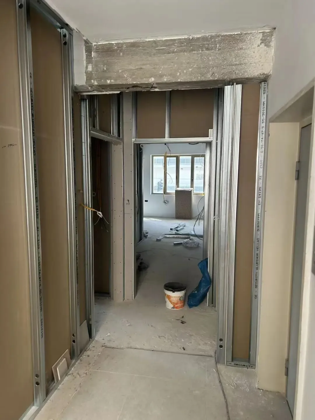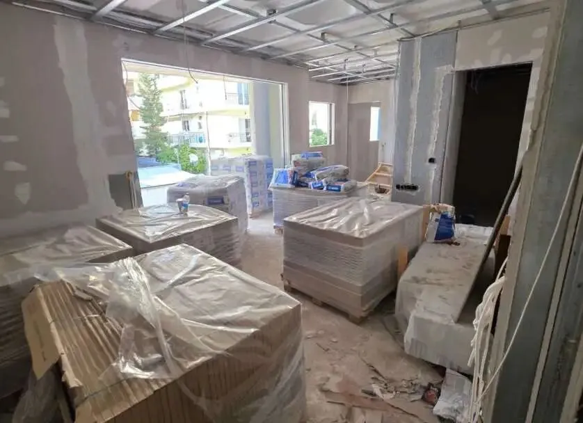 拆除旧部分建筑,公共区域清除残留建筑垃圾,准备开始隔墙工程。