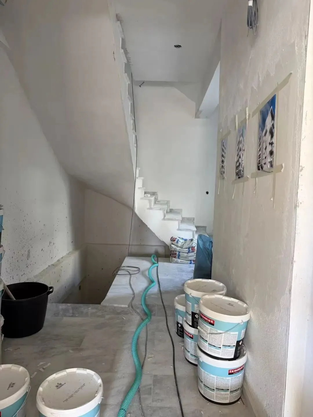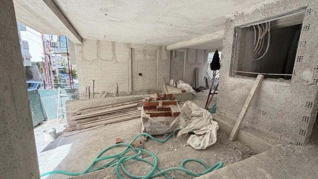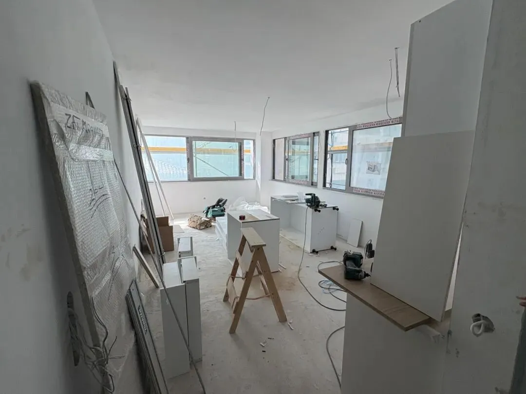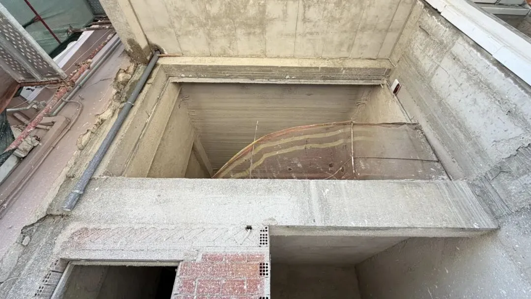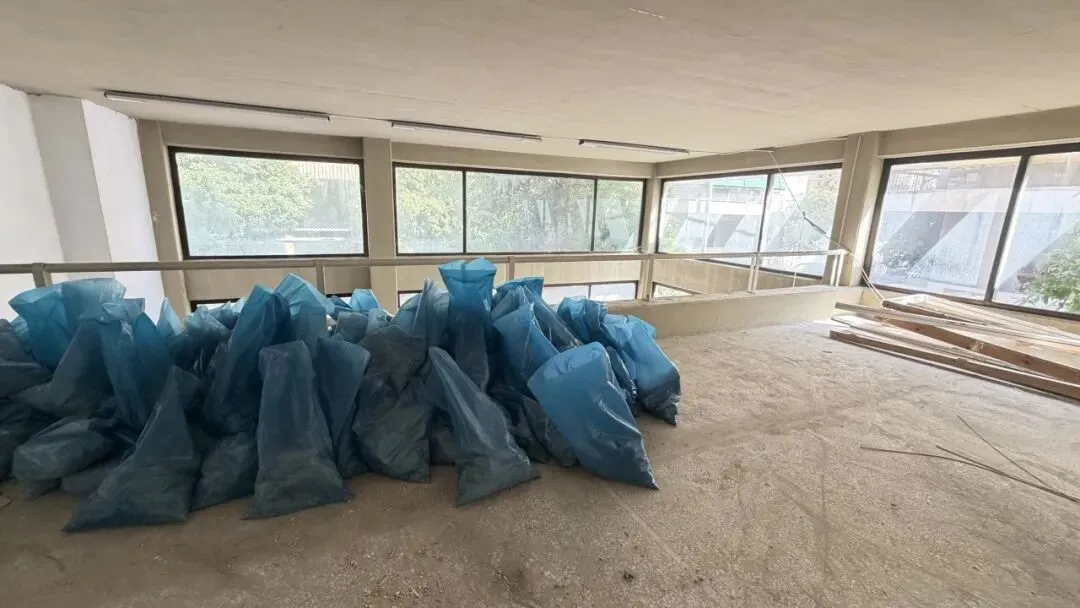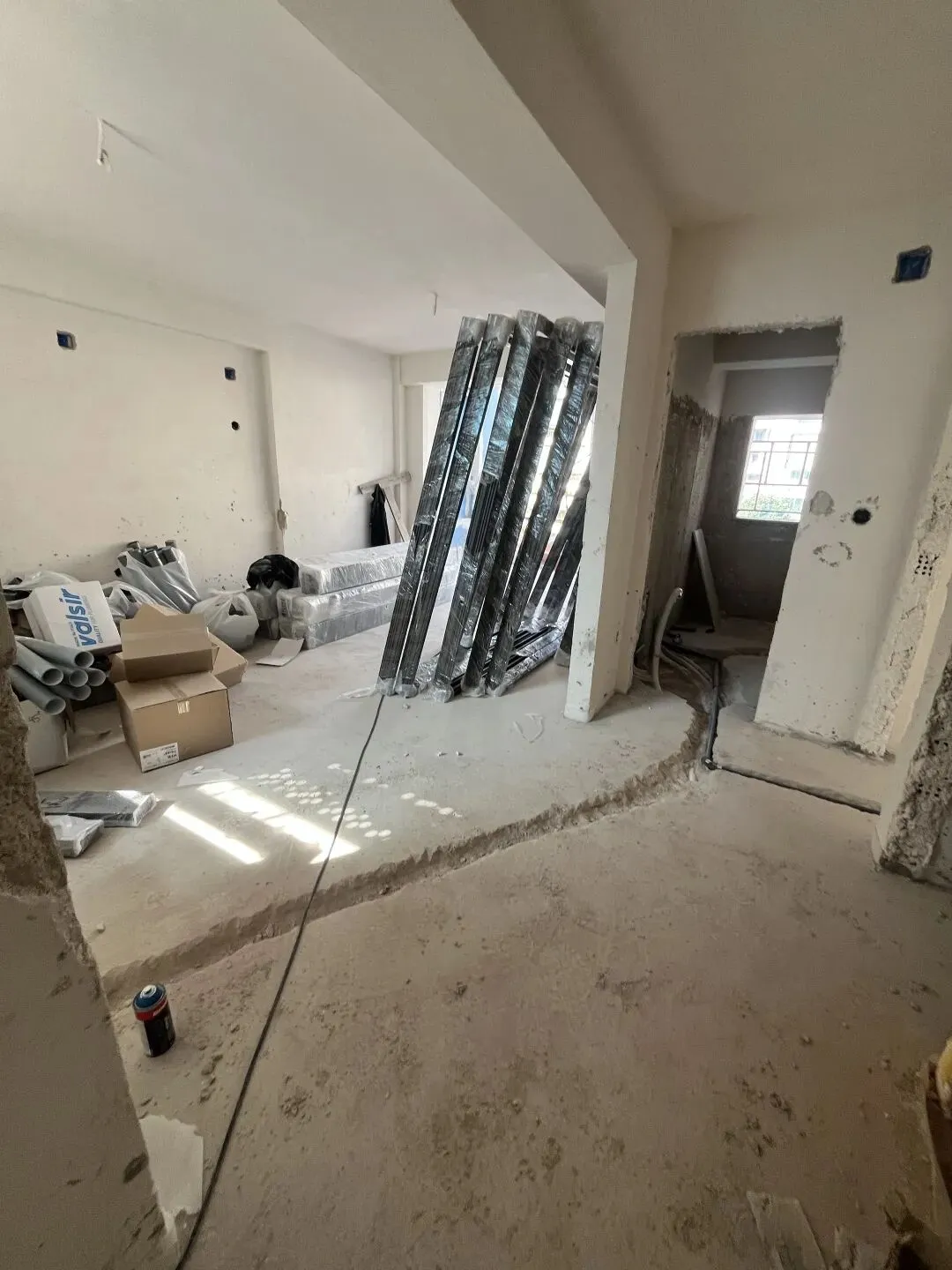 拆除旧部分建筑,公共区域清除残留建筑垃圾,准备开始隔墙工程。