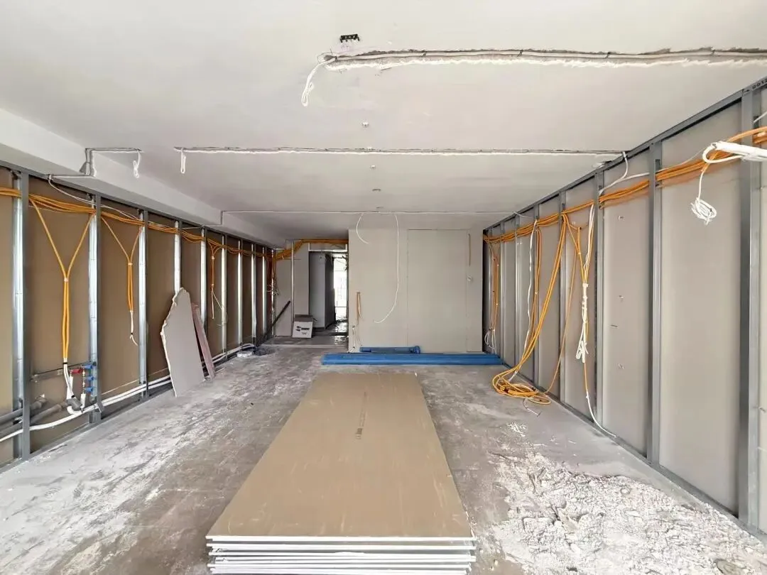 管道铺设,地面工程,隔墙工程,公共区域施工。