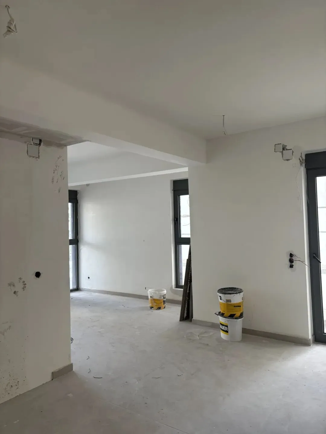 阳台施工,窗户安装,门套基层、房门、地板、瓷砖、墙面涂料、洁具、橱柜等进行安装。