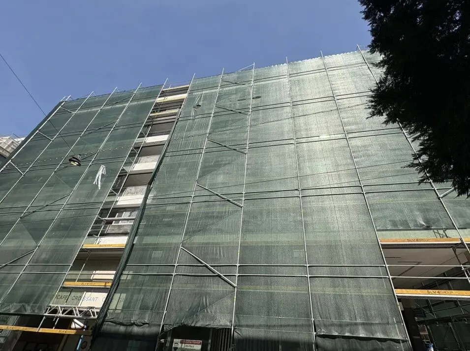 外墙施工,保温层,防水层进场安装,水泥砂浆作业同步进行。