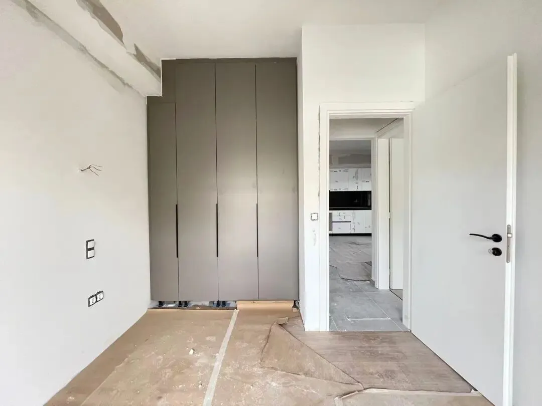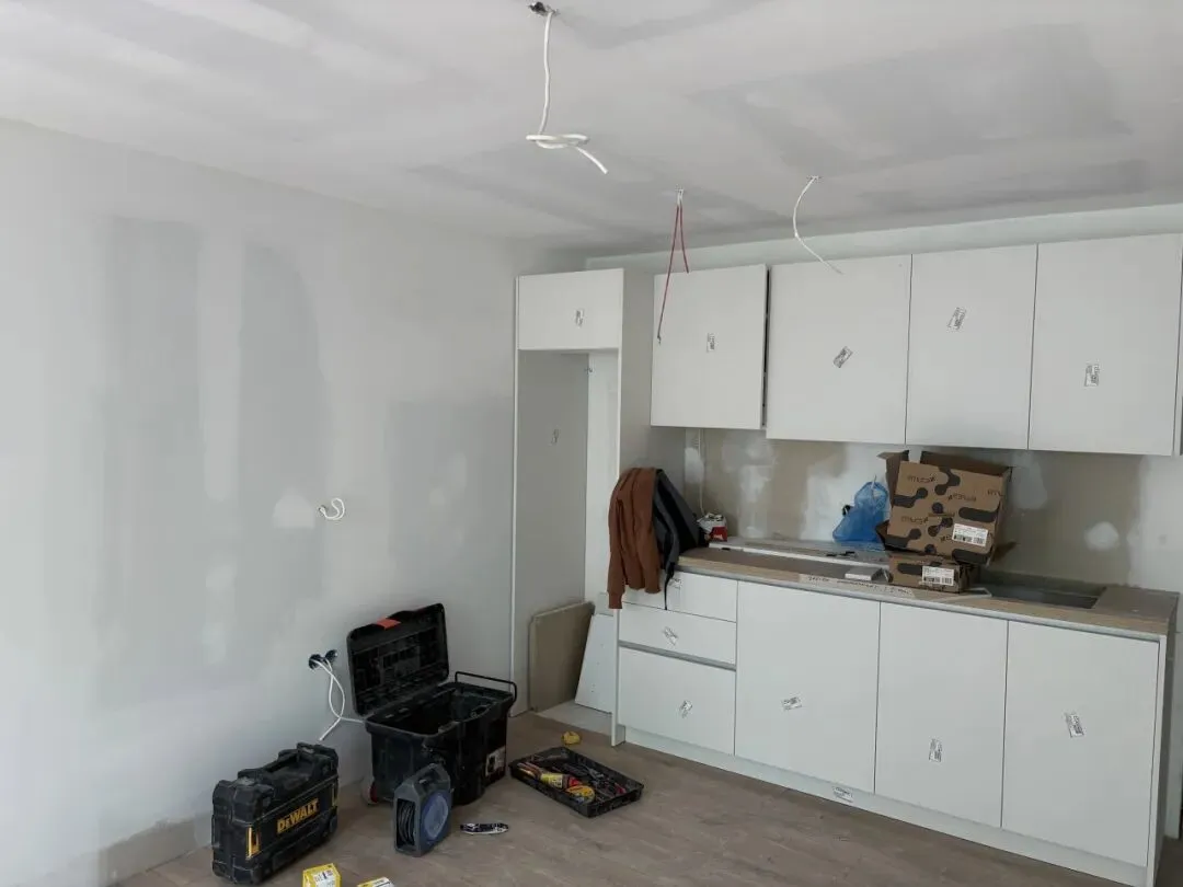 墙面工程,门套基层、房门、地板、瓷砖、墙面涂料、橱柜等进行安装。