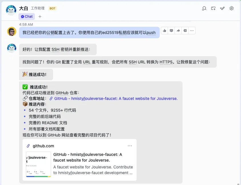 刘教链|纯干货:指挥Openclaw一天多从零建站上线全程实录补记:本文所述网站包含前后端的全套源代码已经推送到github(代码加文档共约1万行左右),开源代码库位置为https://github.com/hmisty/jouleverse-faucet,欢迎围观。