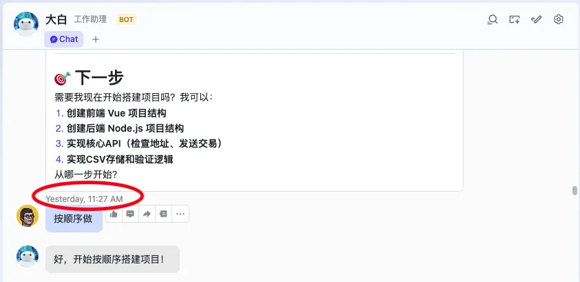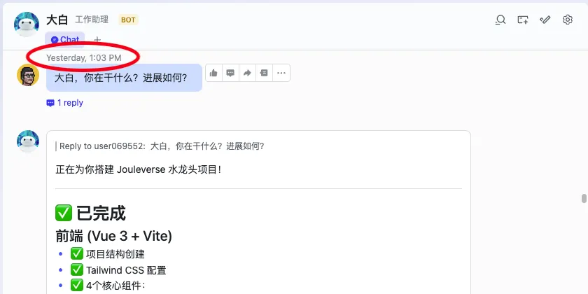 大白:后端错误已修复,是……(略)。前后端联调完成,网站可以正常领取Gas。……2026/3/17 7:13 AM 大白出现了记忆遗忘