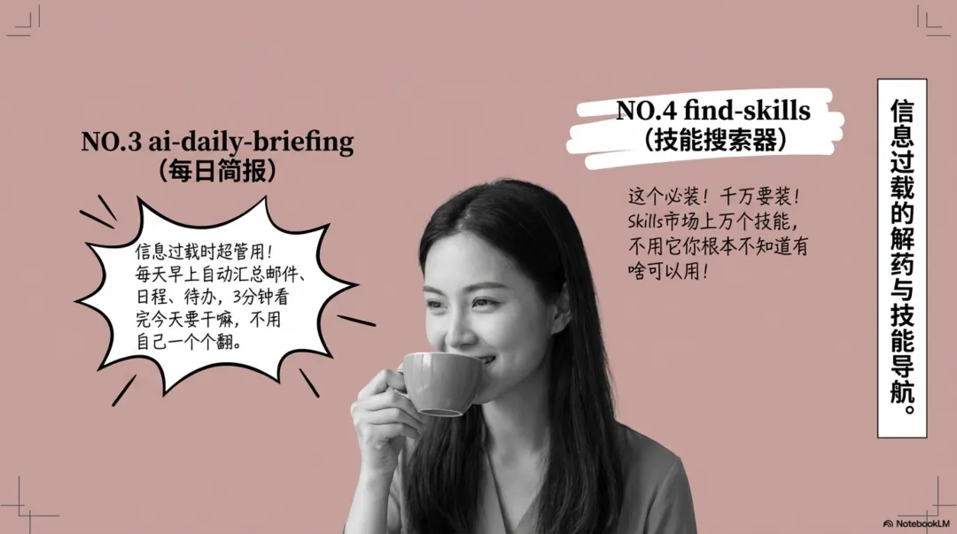 今天推荐10个更通用的Skills,适合大部分职场人。运营、市场、产品、项目管理、行政,甚至学生党都能用上。