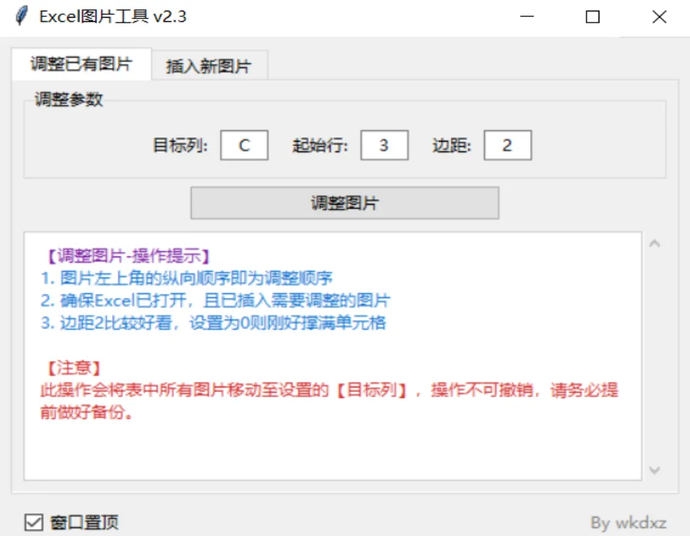 Excel 图片插入、调整工具。