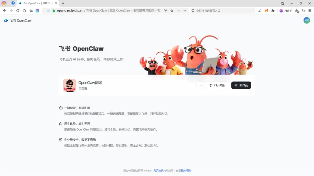 OpenClaw 作为飞书生态下的智能机器人工具,凭借可视化操作、多端适配、安全可控等优势,通过简单的一键配置,即可实现 OpenClaw 与飞书、QQ 的无缝连接,搭配免费 API 资源,无需高额成本,半小时内就能完成全流程部署,轻松解锁智能办公新体验。
