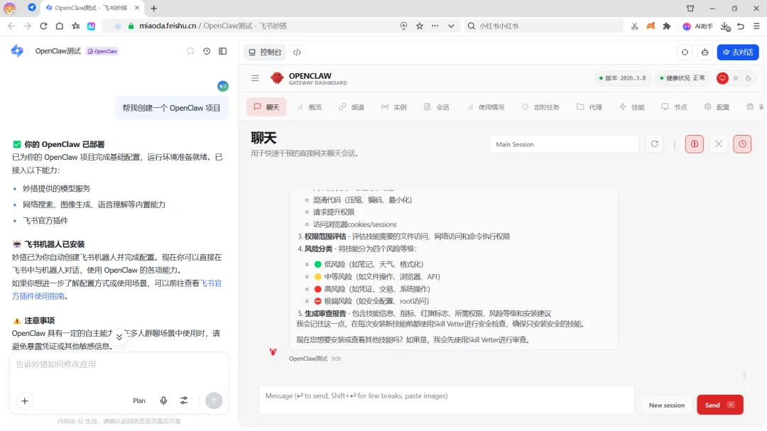 异常处理:每次安装新功能、添加技能后,OpenClaw 会自动重启网关服务,此时页面可能出现402 错误,属于正常现象,无需惊慌,刷新页面重新连接即可恢复正常。
