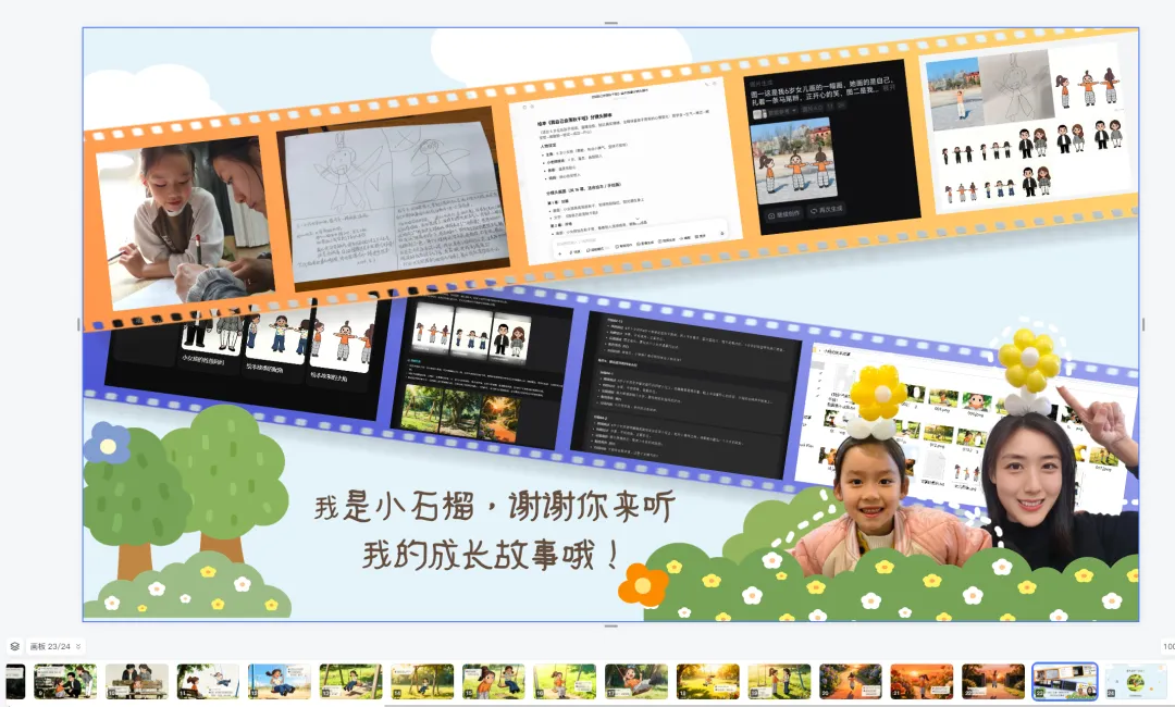 再比如我说自己,不懂绘画,不懂代码,我和女儿用AI协助,花了6个小时,把孩子的成长故事,做成了实体的亲子阅读绘本,还做了一部由女儿AI分身出演的动画片,来记录孩子的成长。