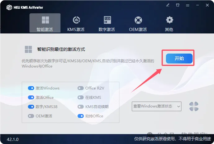 启动激活工具并以高级权限执行程序内部文件