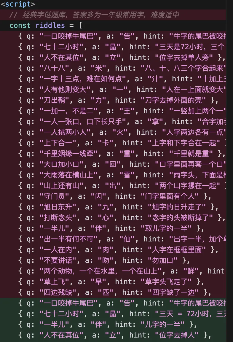 我们没有止步于课本朗读、口头猜谜、机械识字的传统模式,而是从儿童真实学习兴趣出发,把经典文字游戏,升级成一款专为孩子定制的AI猜字谜互动小程序,让汉字学习从“被动记”,变成“主动玩、乐于探、大胆说”。