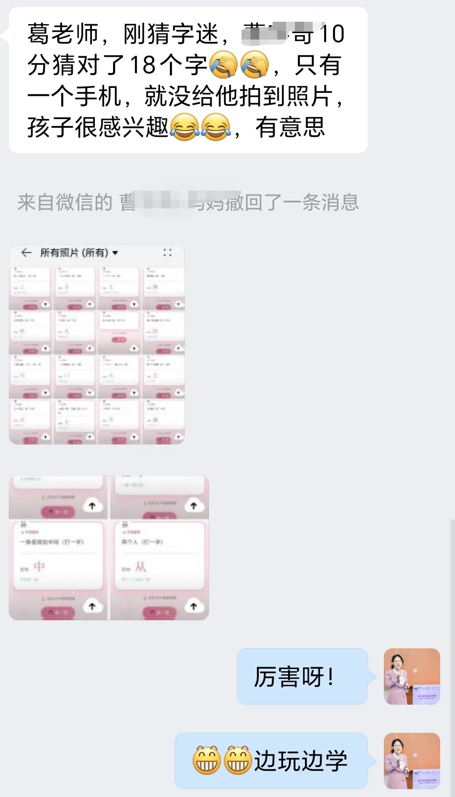 小程序上线后,孩子们在趣味闯关中认识汉字、开动脑筋、自信表达;家长们积极陪伴、亲子共玩、踊跃反馈,小小的猜字谜游戏,不仅点燃了孩子们对中华汉字的热爱,更成为未来学校“AI+教育”创新实践的生动缩影。