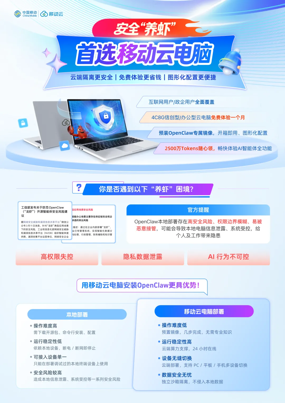 为助力安全规范、多快好省“云端养虾”,移动云电脑特别推出“龙虾”免费送活动。