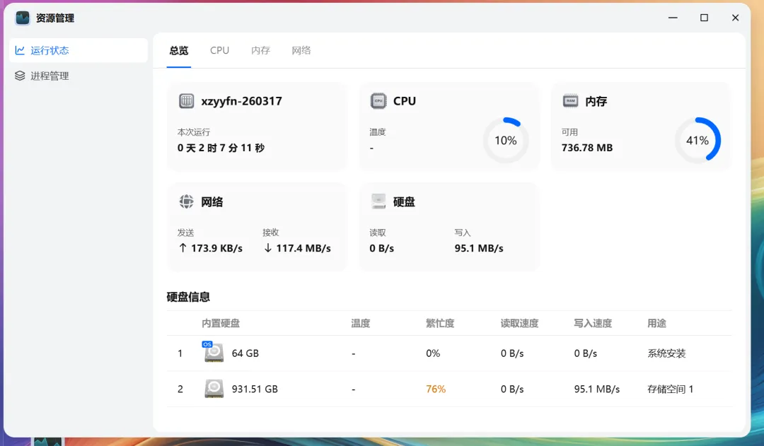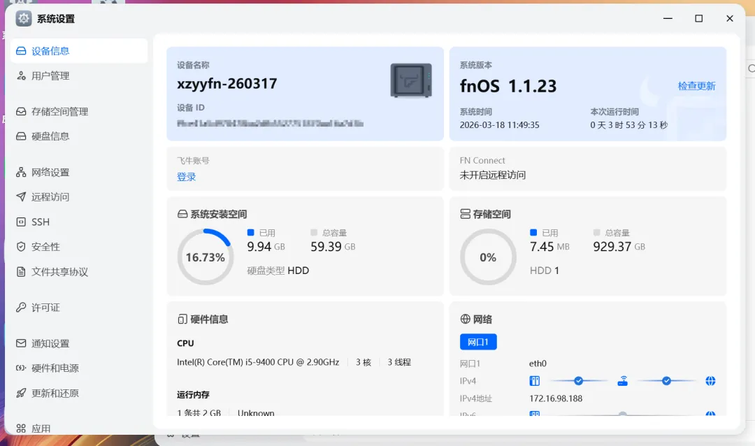 老电脑别闲着!4G内存实战Windows Server 2019,Hyper-V虚拟化飞牛NAS全攻略前言昨天看到公司还有个淘汰的电脑主机闲置着,拆开看了下配置 i5 9400 + 4G内存 +128G固态+1T机械配置只能说够用,是去年采购了一批32G内存的新电脑后淘汰下来的。准备以及效果展示这个操作对cpu的性能要求没那么高,应该有个4核就可以带的动了要求电脑有千兆网口(一般都有)系统盘最好是固态,应该有个64G就够了数据盘多多益善,根据自己需求来,实在不行500G的也行需要一定技术基础,至少需要会装虚拟机、重装系统和安装飞牛(图:最终系统盘占用)(图:上传文件时cpu占用不超过20%)(图:飞牛的系统占用更低)(图:文件上传速度平均在90MB/s左右)正文下面是大概的操作流程:1.重装电脑系统,安装windows server 2019 标准版,带桌面的那个2.安装飞牛虚拟机系统盘分配64G安装的时候内存以及核心配置可以调高一点,后面再调低1个核心1G内存都行,当然高点会流畅很多3.脱机机械硬盘,添加到飞牛虚拟机上优缺点和直接装飞牛比起来多了一个可操作的界面,缺点是性能更低(影响不大)看上去是变差了,但是有一个特殊的玩法如果电脑配置还行(冗余2G内存和2核心),可以使用外接的移动硬盘不会对当前电脑的使用有多大的影响,飞牛的数据盘可以直接挂载可以认为是硬盘自带飞牛系统,不需要额外的电脑例如我办公的电脑,上面有两个飞牛虚拟机,系统是win server 2025内存占用才36%,影响不大