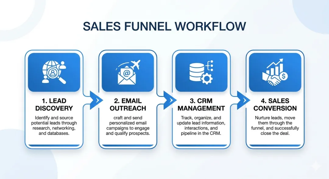 • 设计完整工作流(线索→外展→转化→沉淀) • 建立数据闭环(每次互动都记录到 CRM) • 持续优化(A/B 测试、复盘、迭代)