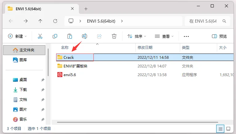 12.打开安装包解压后的【ENVI 5.6(64bit)】文件夹,双击打开【Crack】文件夹。
