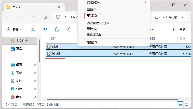 13.全选该文件夹下的两个文件,鼠标右击选择【复制】。