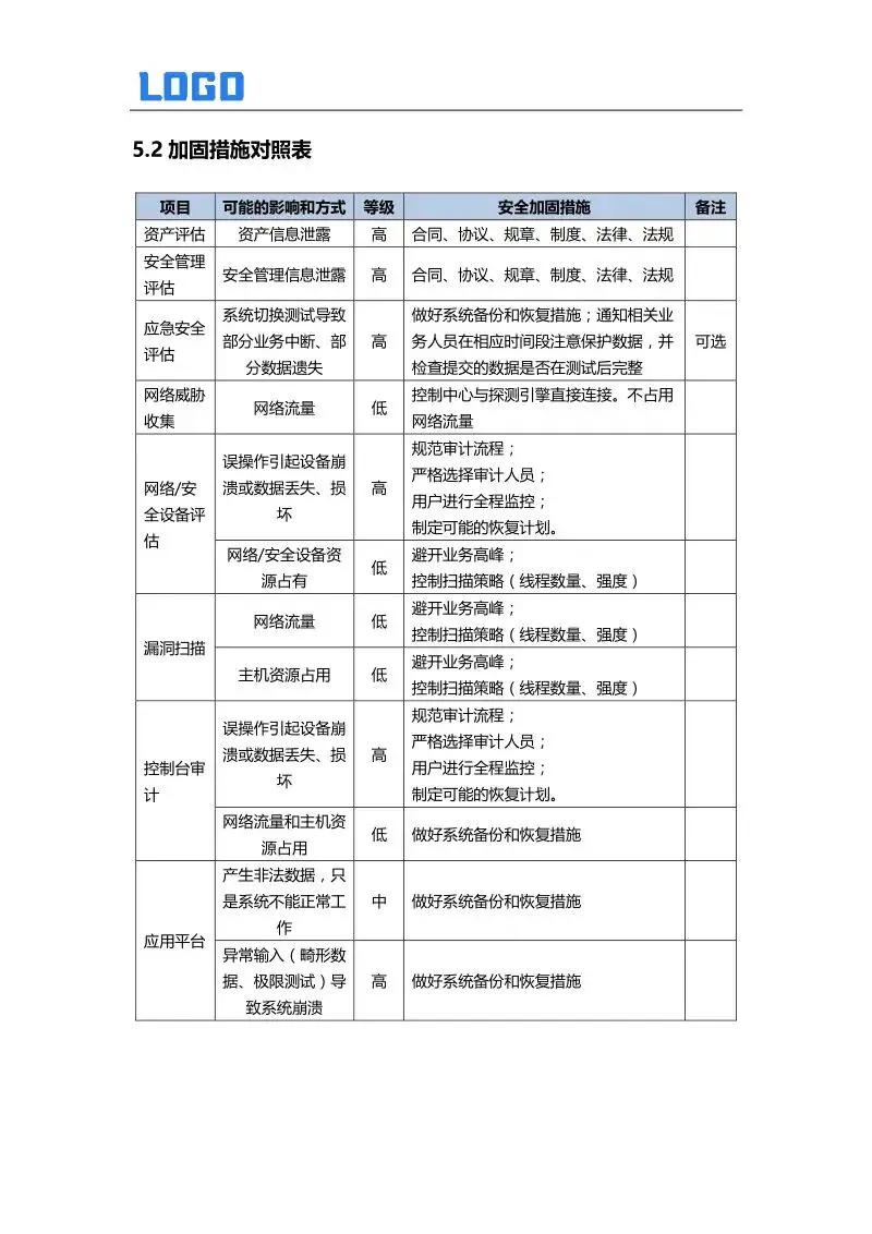 5.2 加固措施对比表