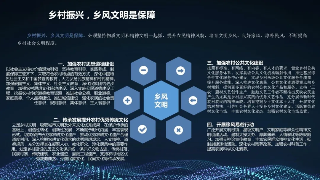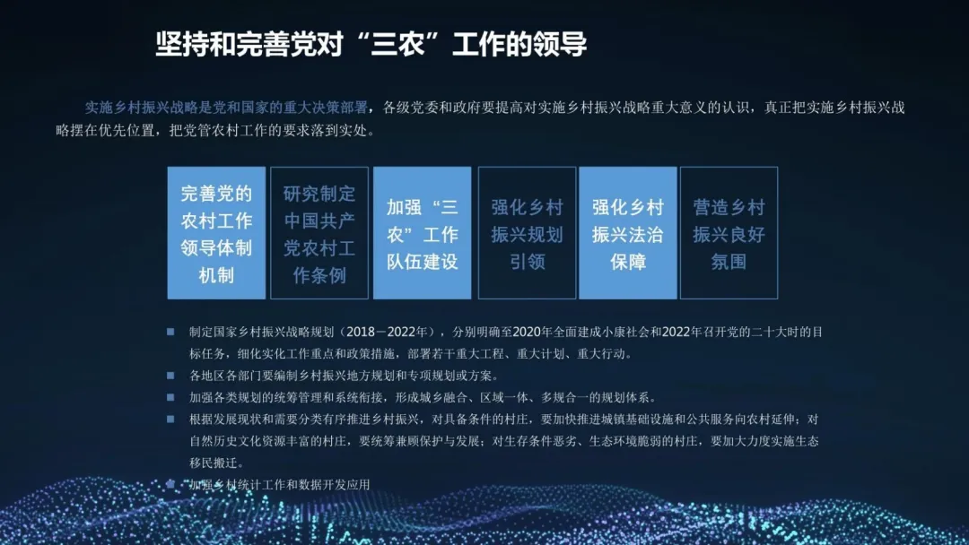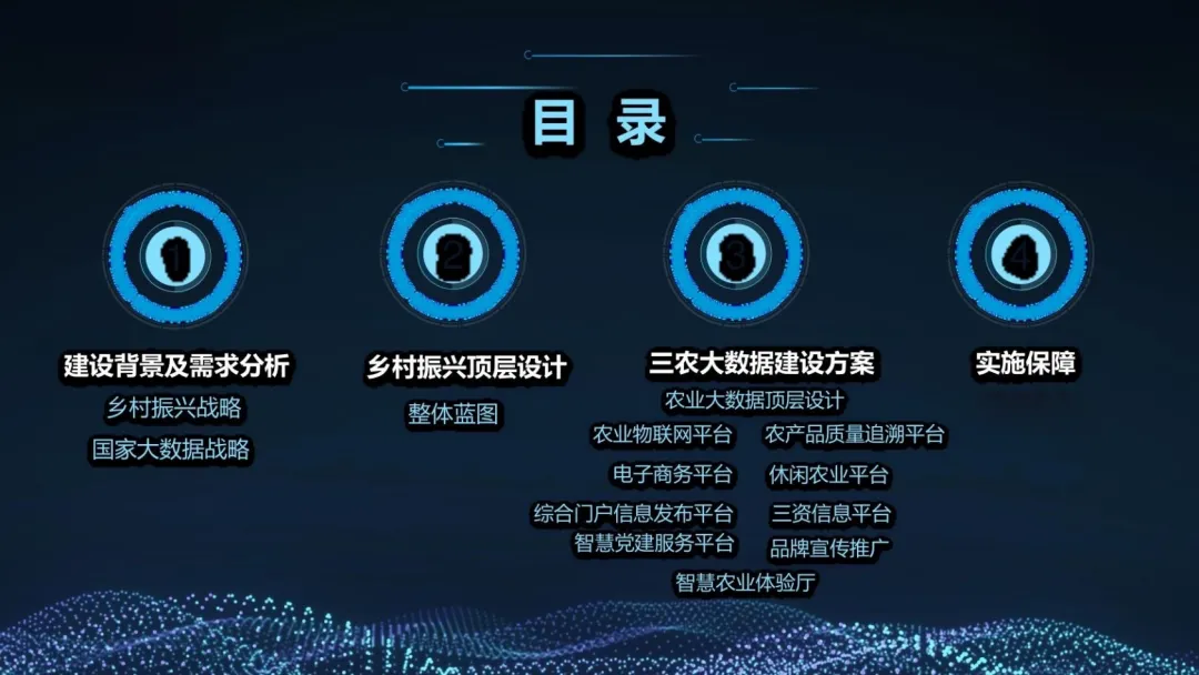 :基于整合后的大数据,进行消费者画像分析,实现区域农产品品牌的精准广告投放;同时为政府产业规划、灾害预警、价格调控提供科学的决策支持模型。 实施保障:为乡村振兴注入持久数字动能