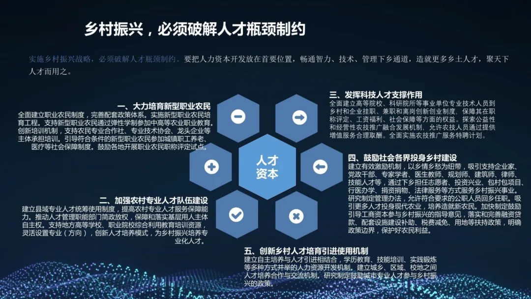 :通过建设智慧农业体验厅,运用5G、VR等新技术,生动展示智慧农业成果,开展远程互动培训,提升社会认知与农民技能。 - 机制创新